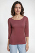 This easy cotton tee is a comfortable wardrobe staple with an elegant flair — featuring a boatneck, three-quarter sleeves, and a semi-fitted silhouette.