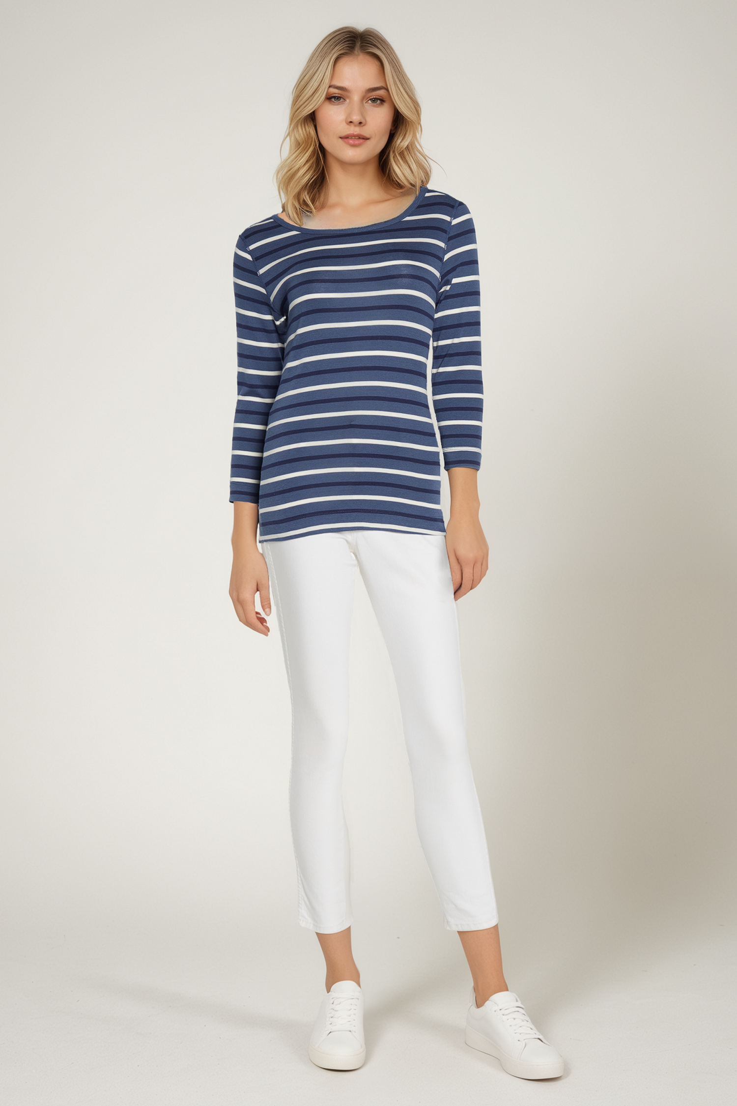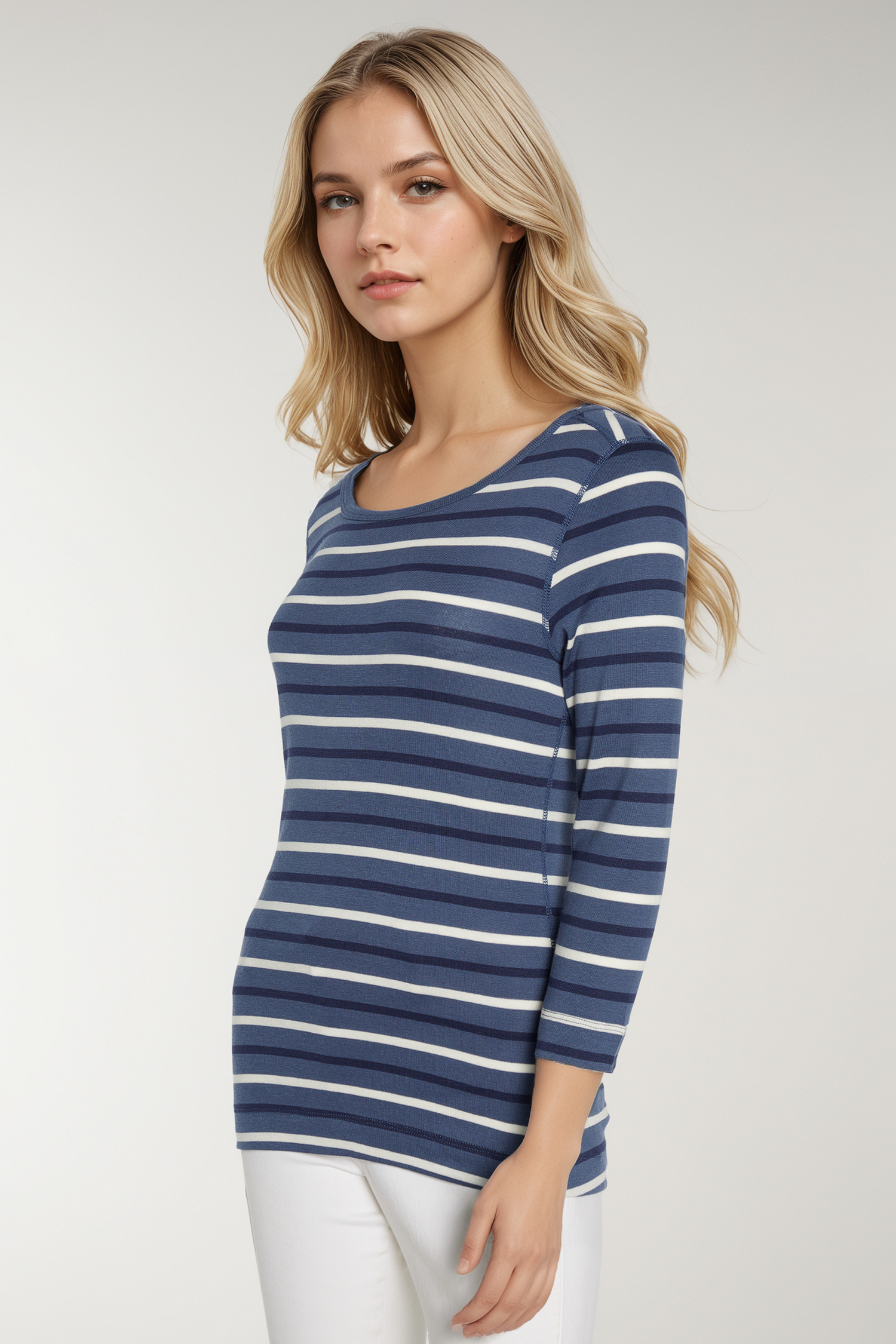 3/4 Sleeve British Tee | Partly Cloudy Stripe