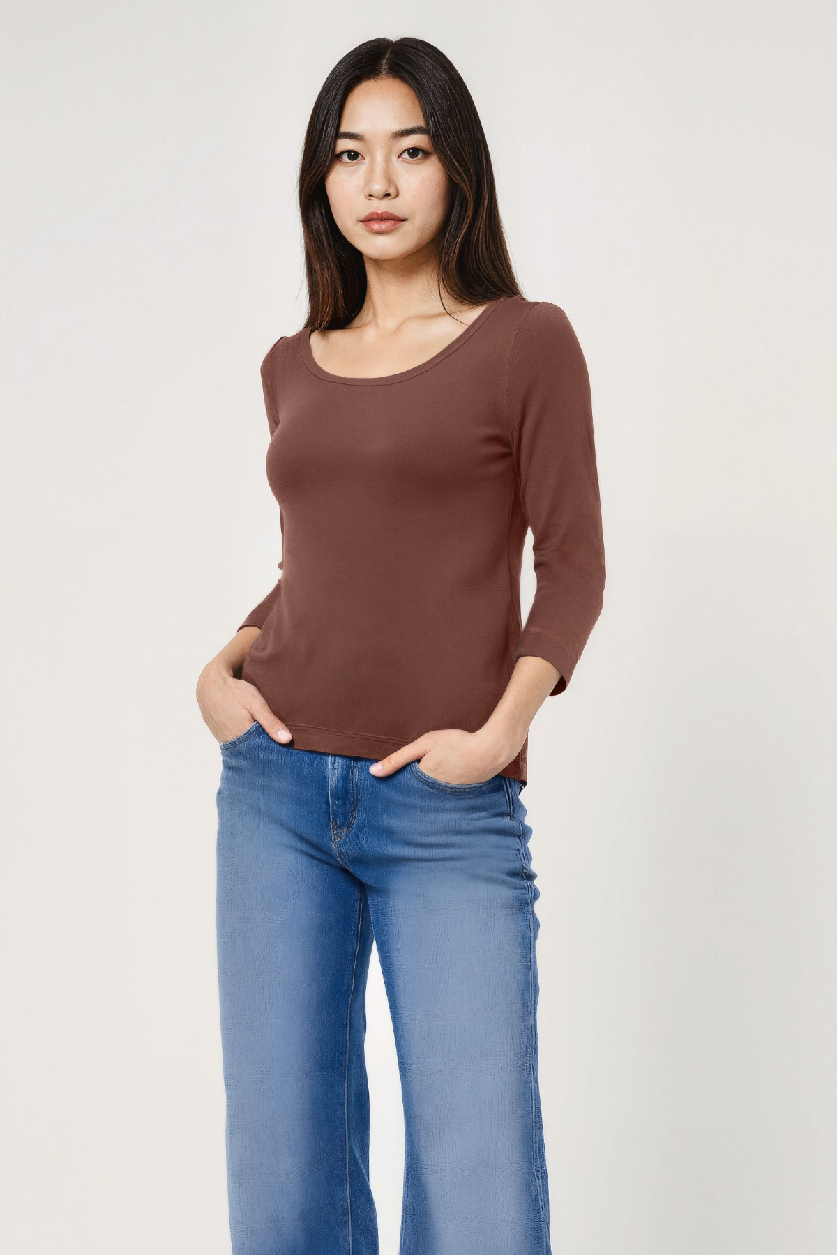 Boat Neck 3/4 Sleeve Tee | Chicory Coffee