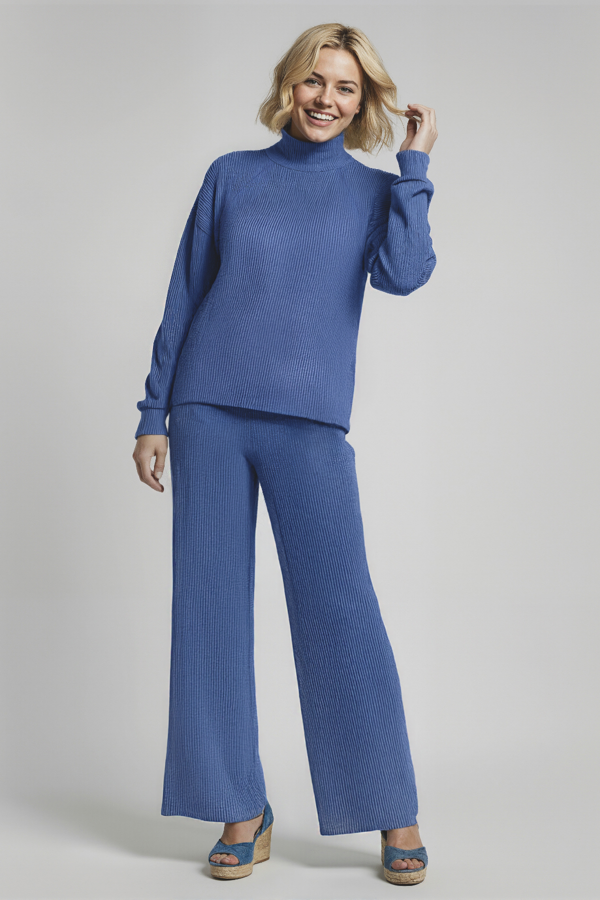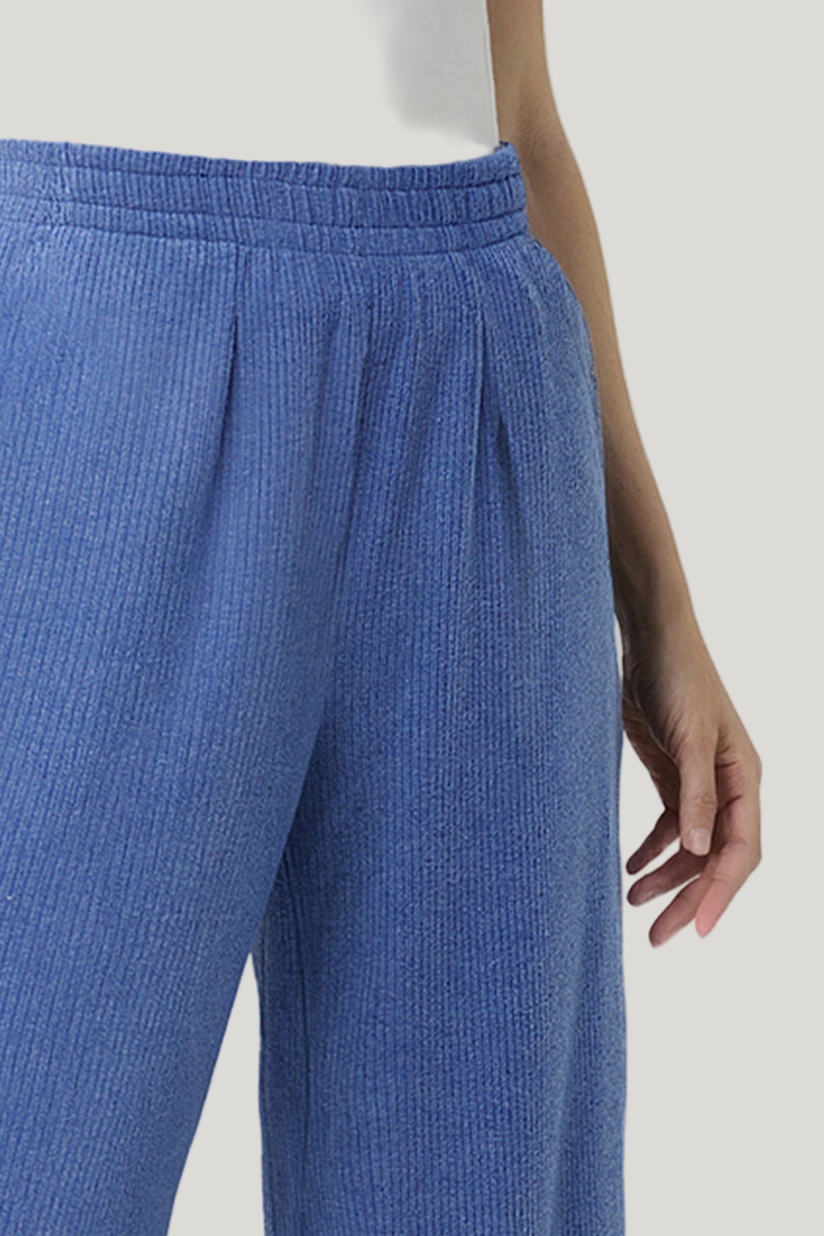 Cool, comfy, and effortlessly stylish! These soft blue textured wide-leg pants bring relaxed sophistication to your everyday wardrobe. With a stretchy waistband and easy pleats, they’re perfect for lounging or stepping out in elevated ease.