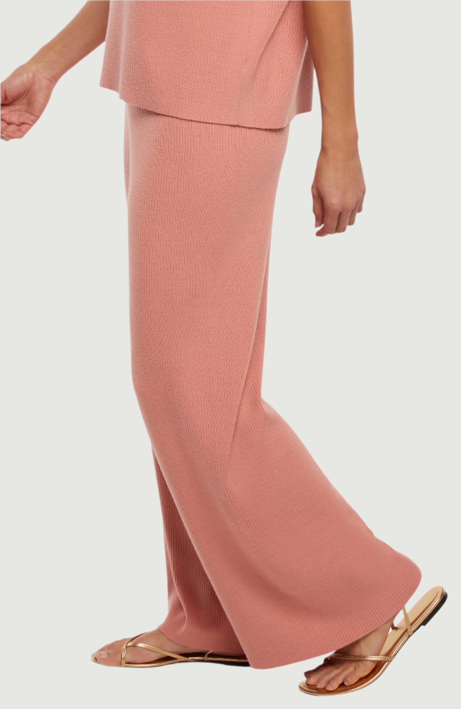 Step into laid-back luxury with these rose colored wide-leg knit pants! Featuring a soft ribbed texture and relaxed fit, they’re perfect for cozy days at home or effortlessly chic outings—style meets comfort in every stride.
