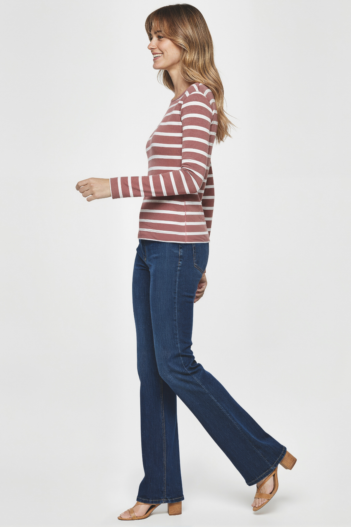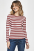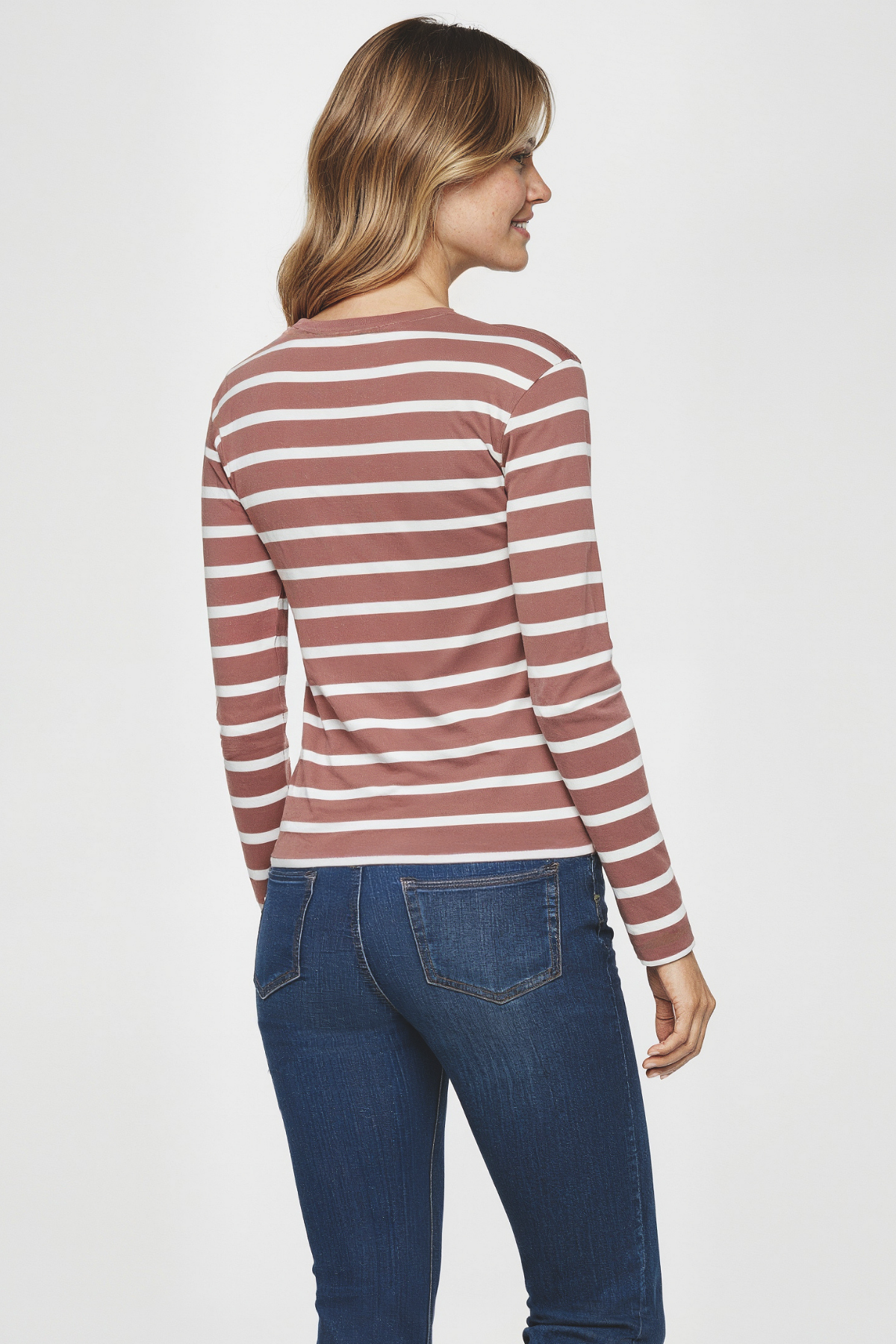 Ribbed Crew-Neck Long Sleeve Tee | Crushed Berry Mel Stripe
