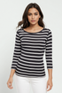 3/4 Sleeve British Tee | Black Beauty Mel Stripes
