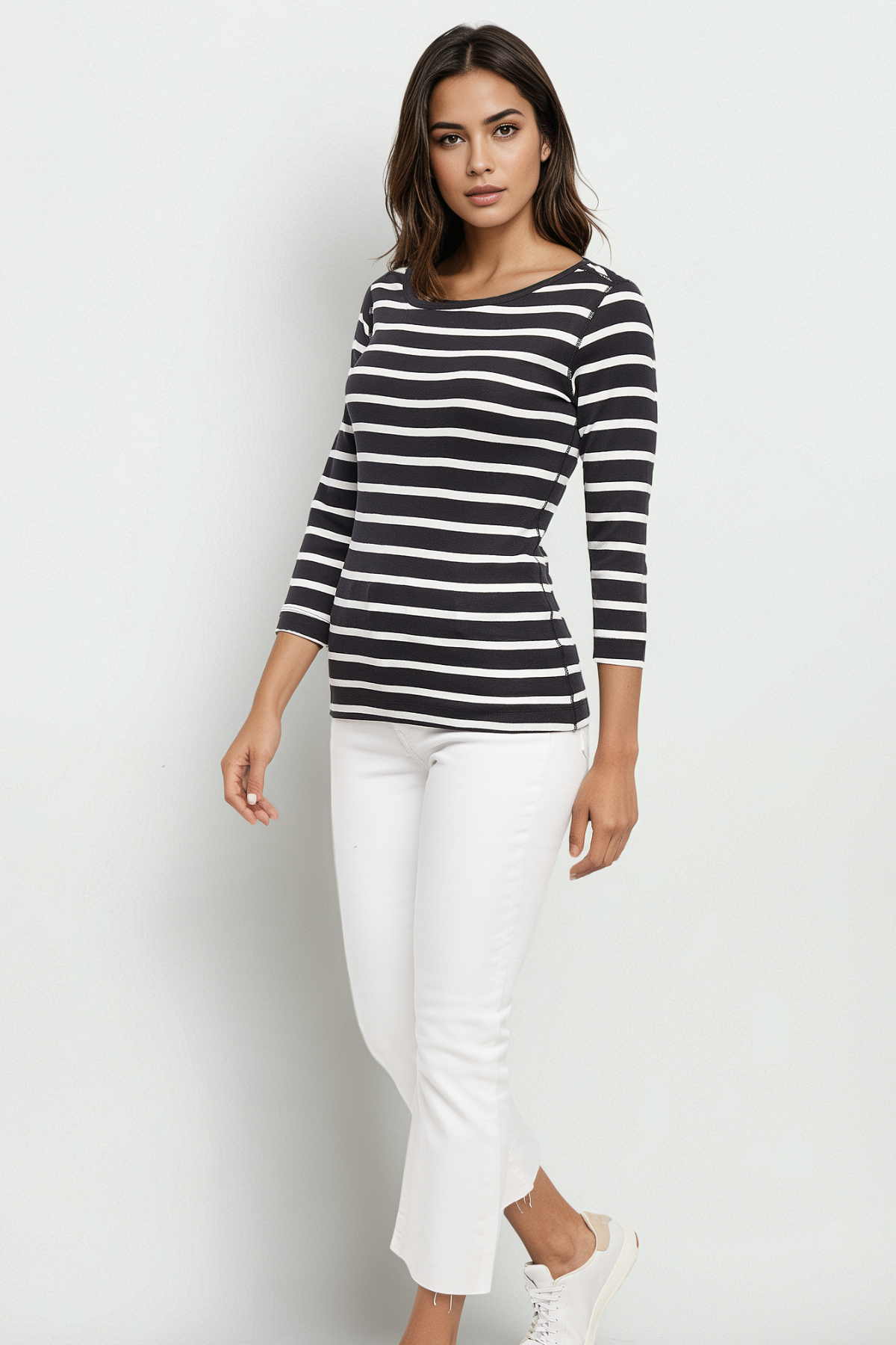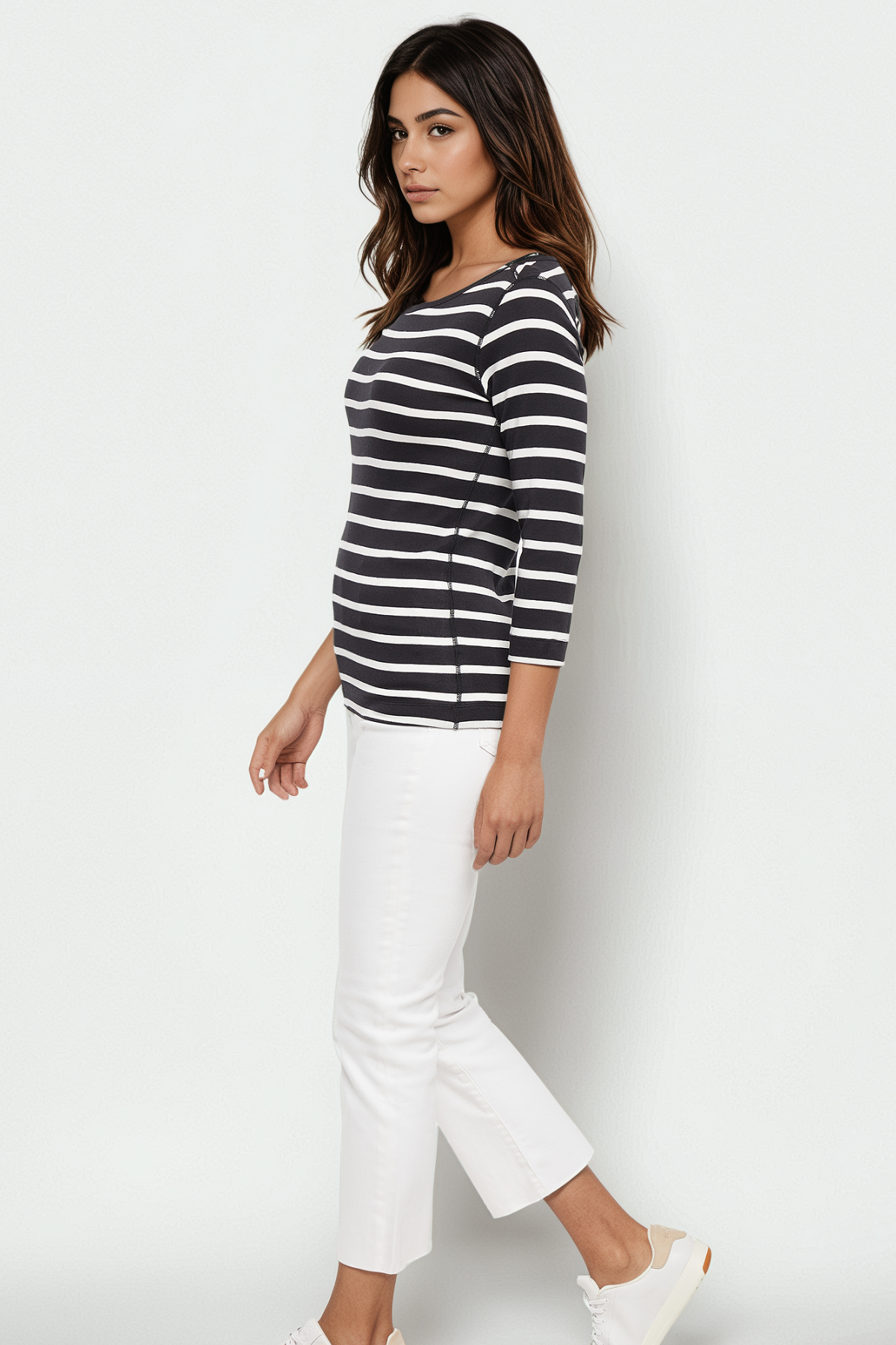 This easy cotton tee is a comfortable wardrobe staple with an elegant flair — featuring a boatneck, three-quarter sleeves, and a semi-fitted silhouette.