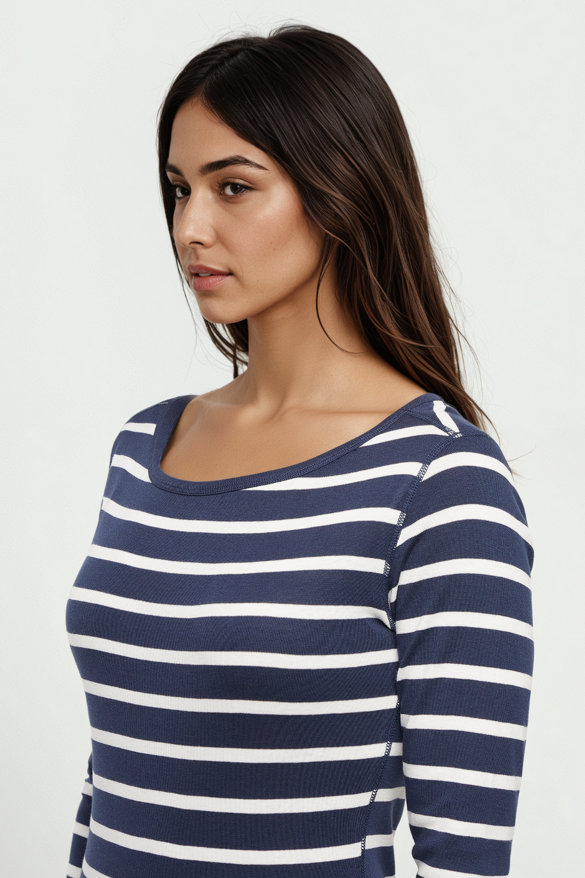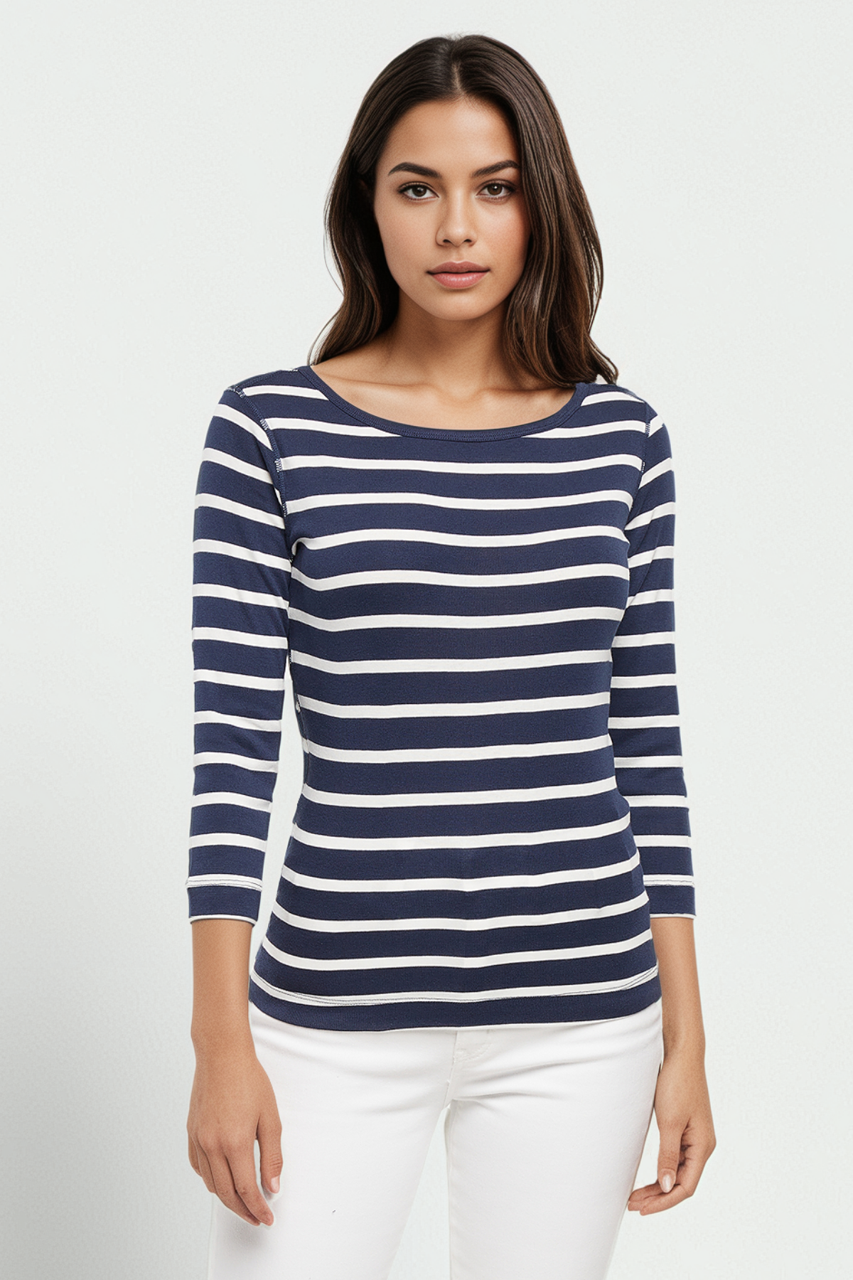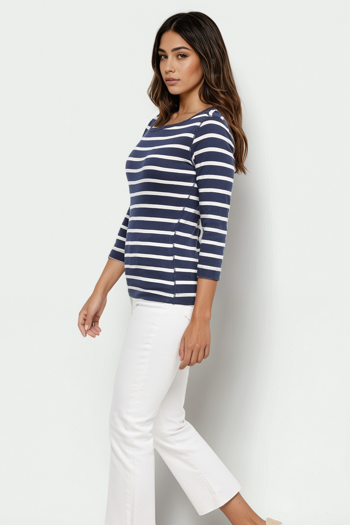 3/4 Sleeve British Tee | Navy Blazer Mel Stripes