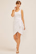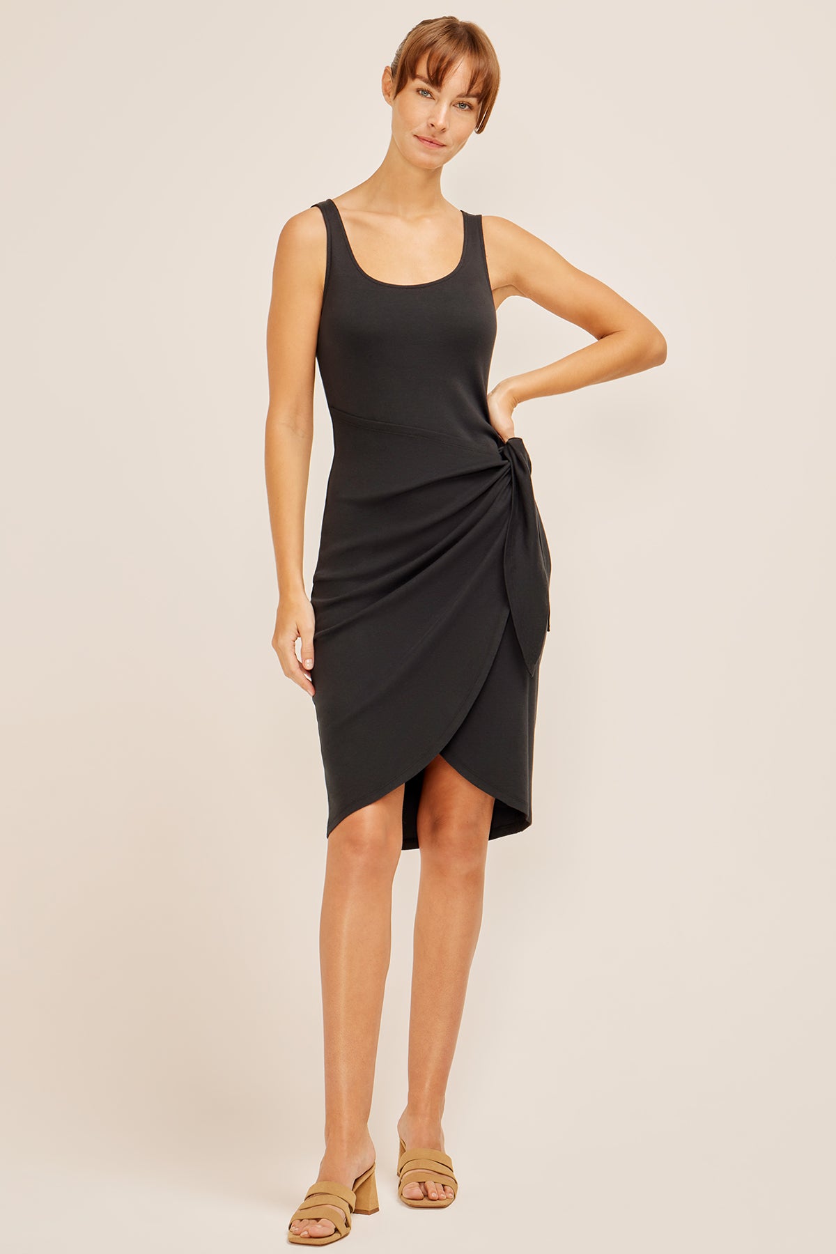 A class silhouette, this cotton-blend wrap-skirt dress features a scoop neck, tulip hem, and side self-tie detail.