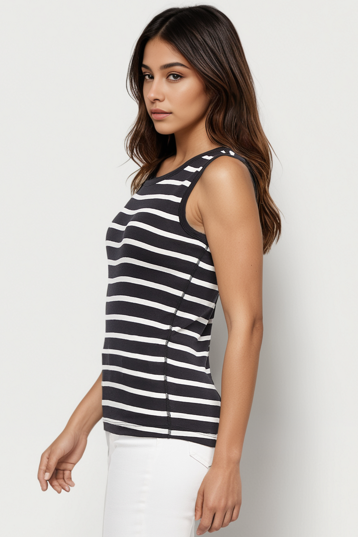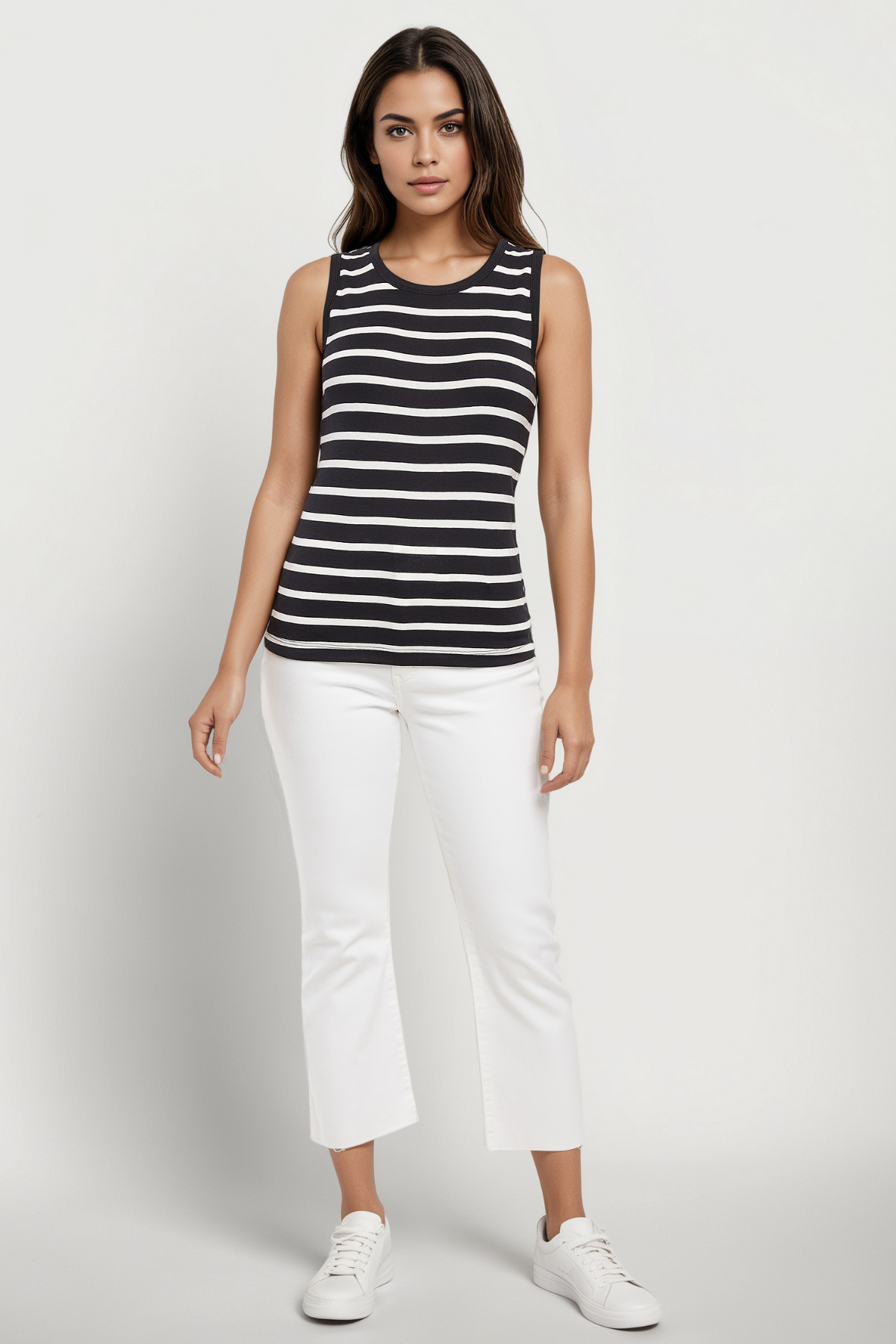 Ribbed Crew-Neck Tank | Black Beauty Mel Stripes