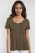 A classic closet staple crafted in soft cotton, this relaxed-fit tee features a deep-V neckline, short sleeves, and a raw-edge hem.