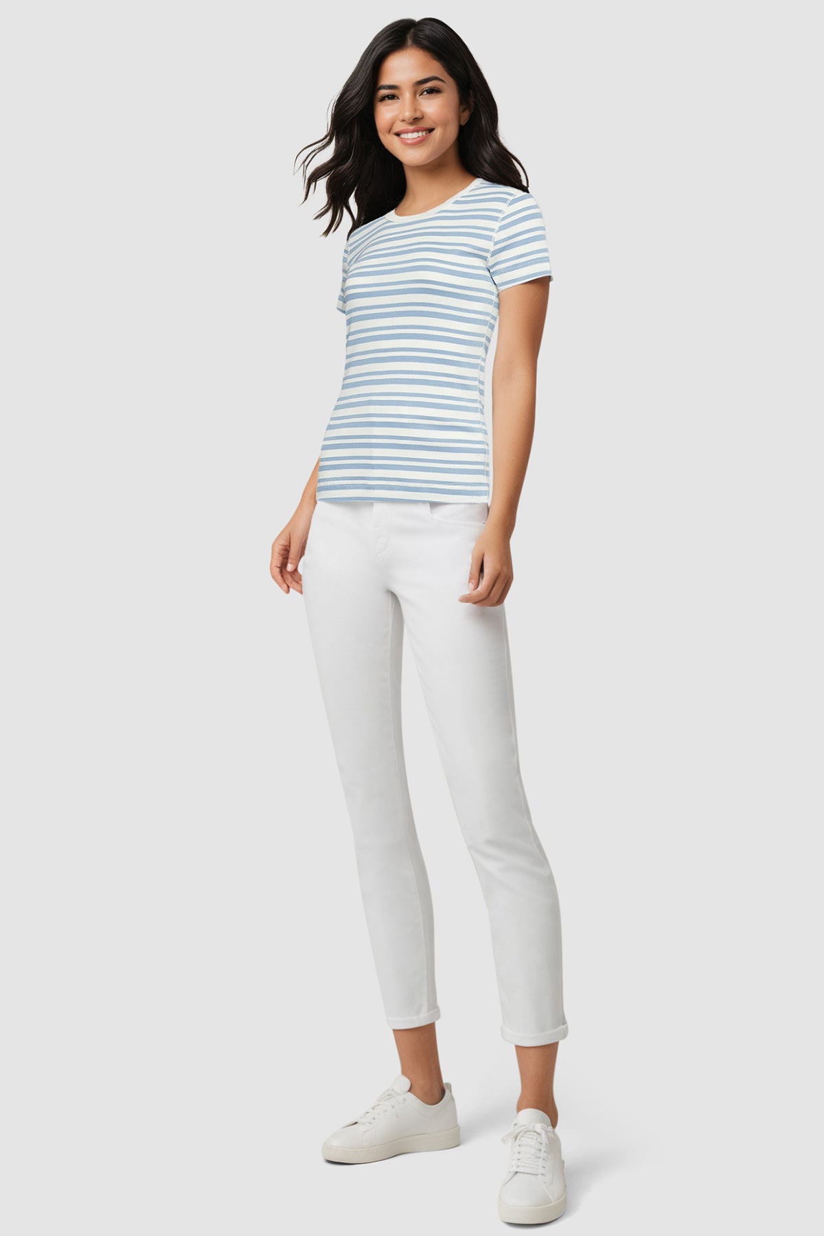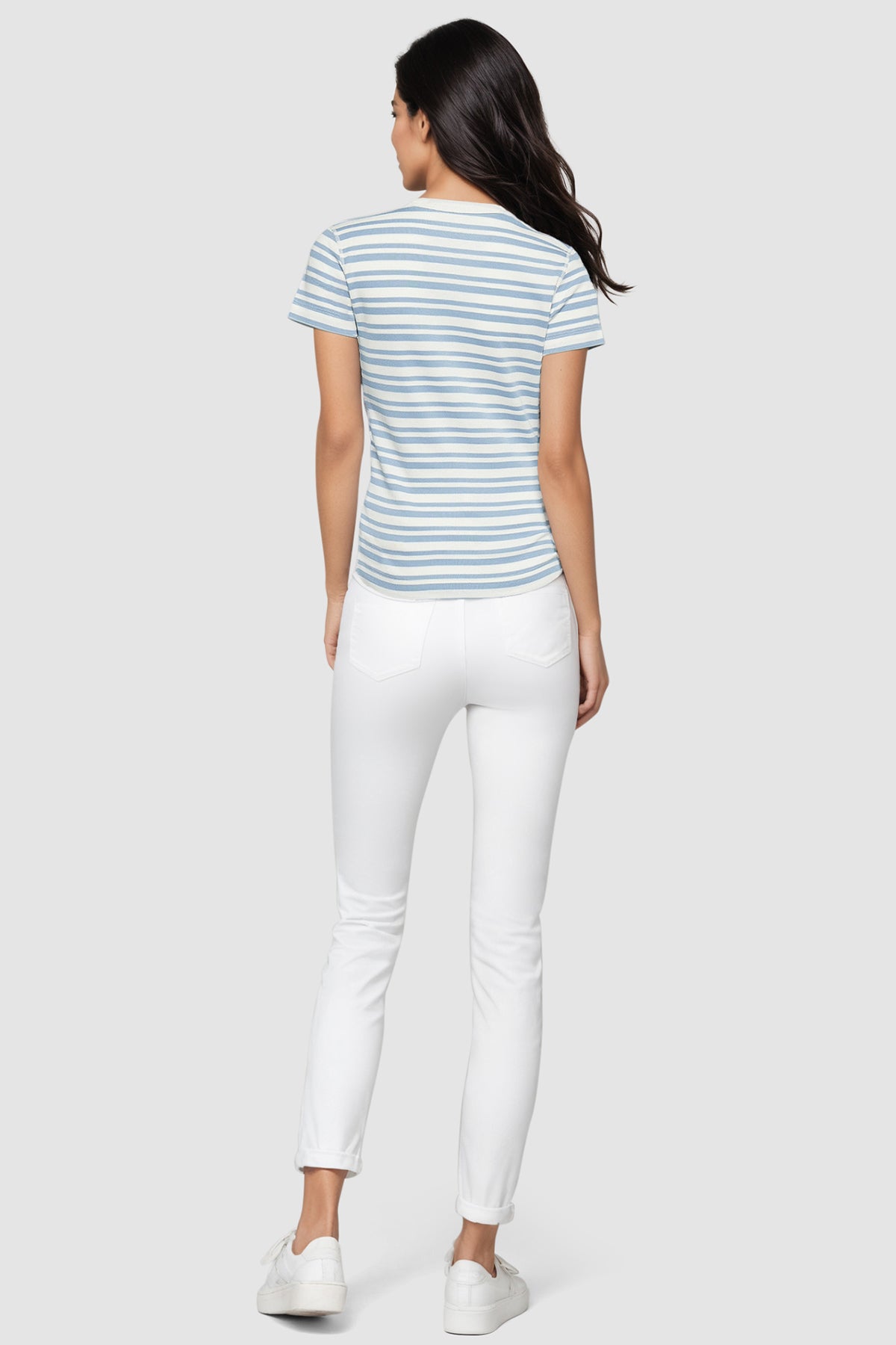 Crew-Neck Short Sleeve Tee | Faded Denim Mature Stripes