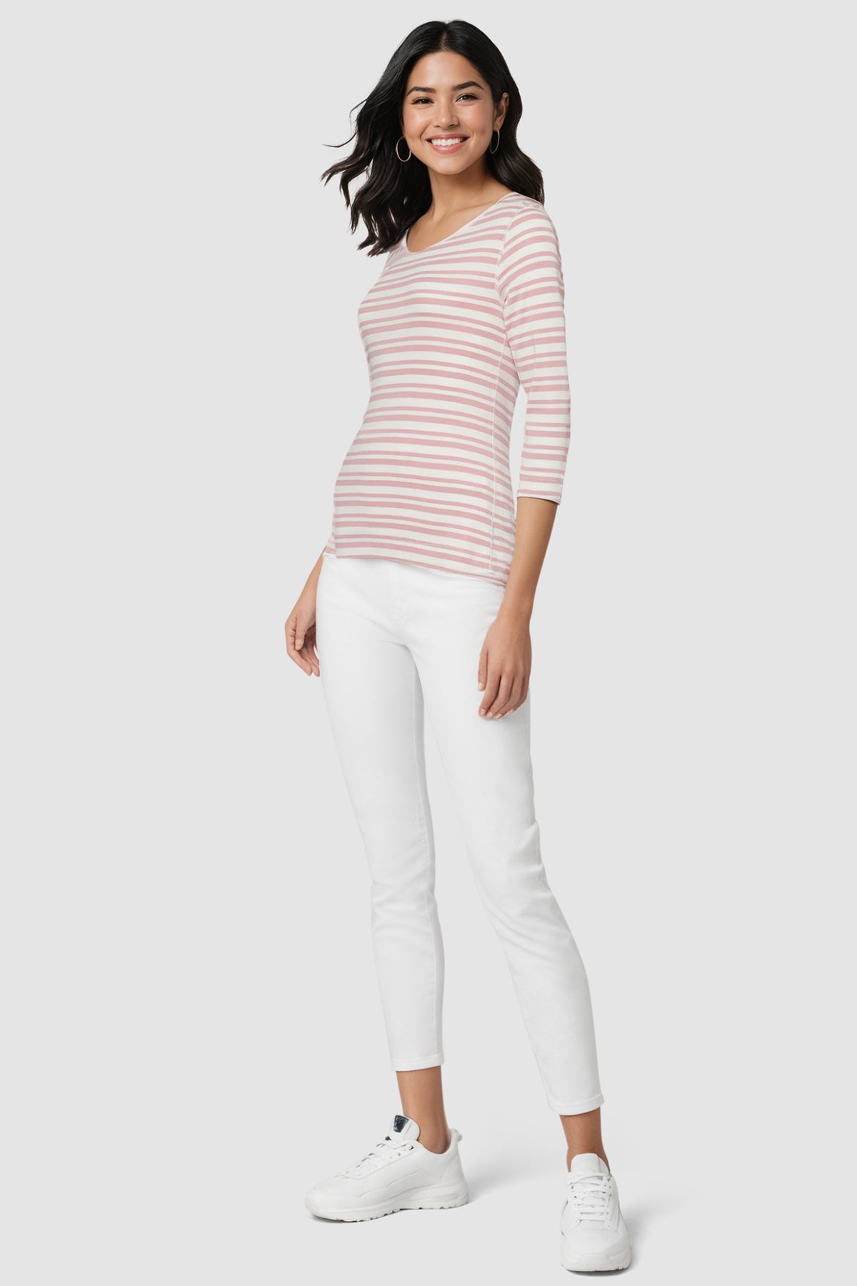 Knit 3/4 Sleeve V-Neck Tee | Zephyr Mature Stripes