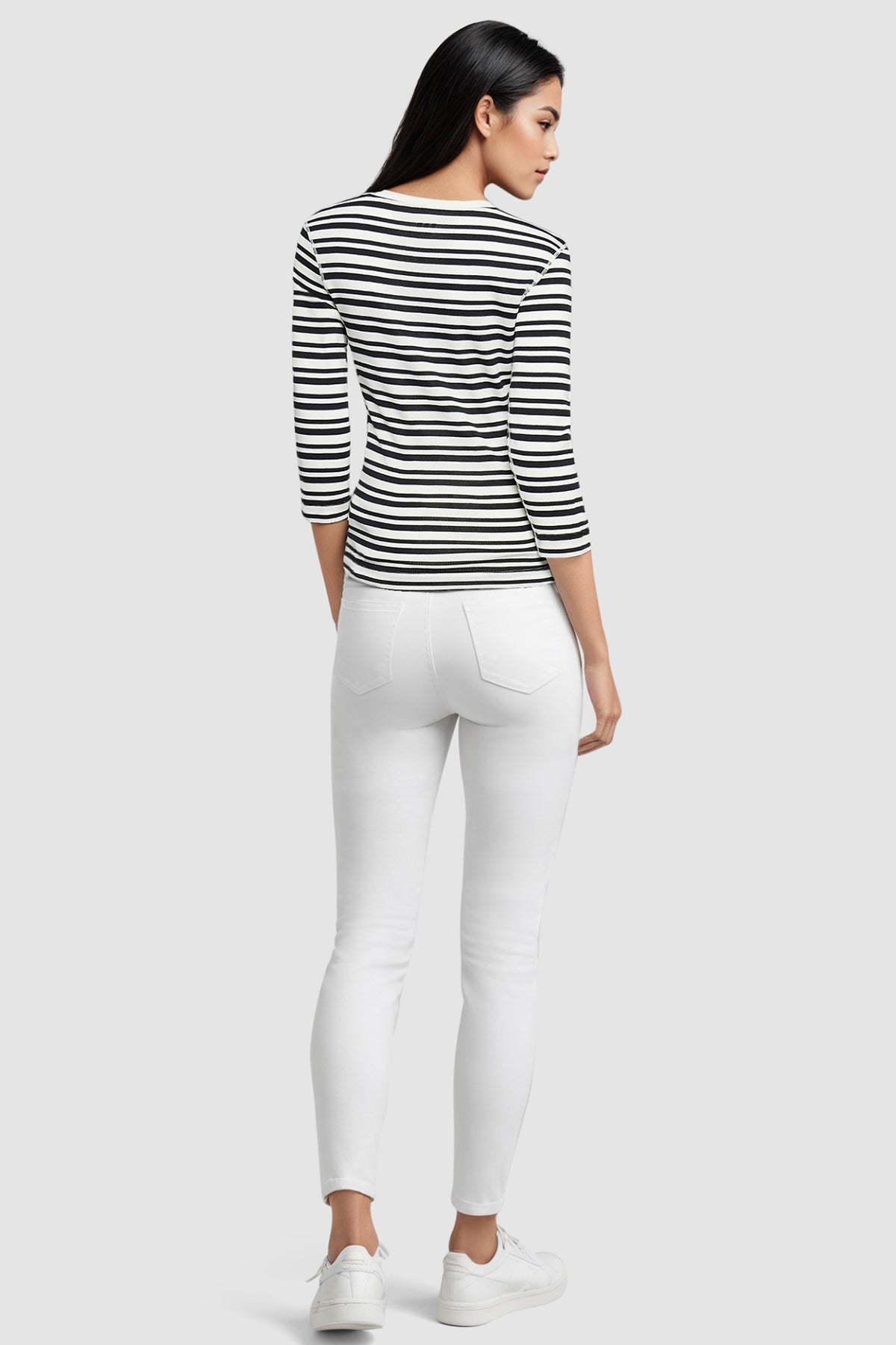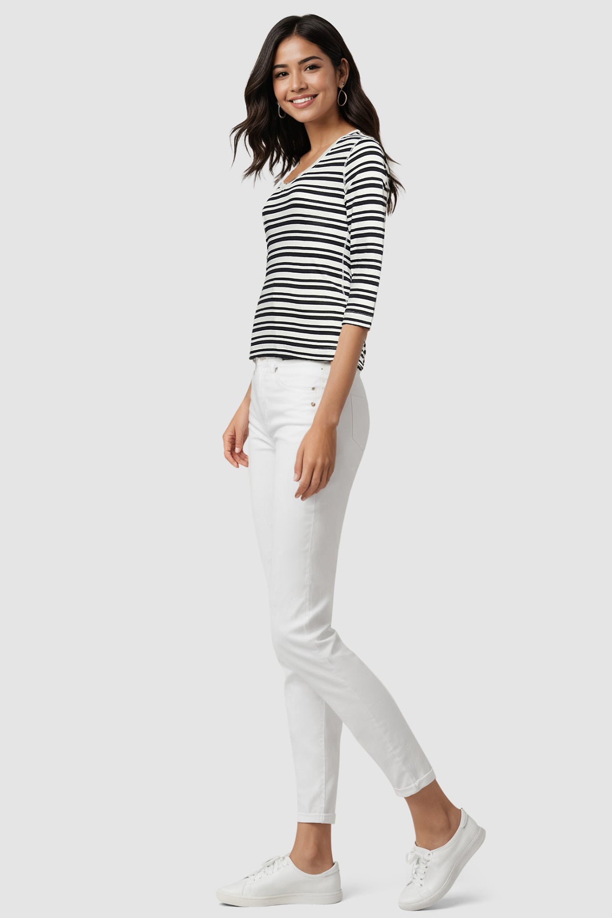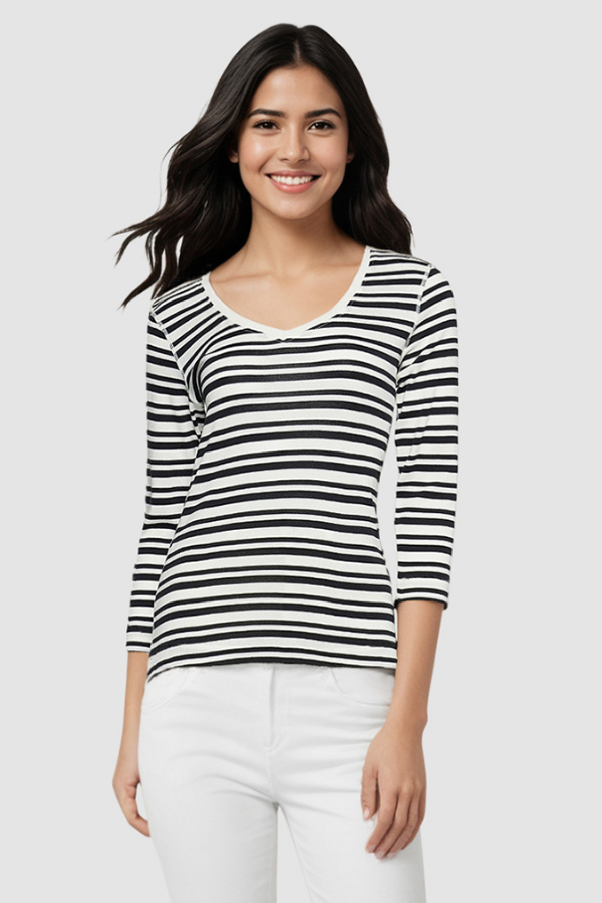 Knit 3/4 Sleeve V-Neck Tee | Black Beauty Mature Stripes