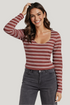 Scoop Neck Long Sleeve Tee | Cherry Mahogany Egret Stripe