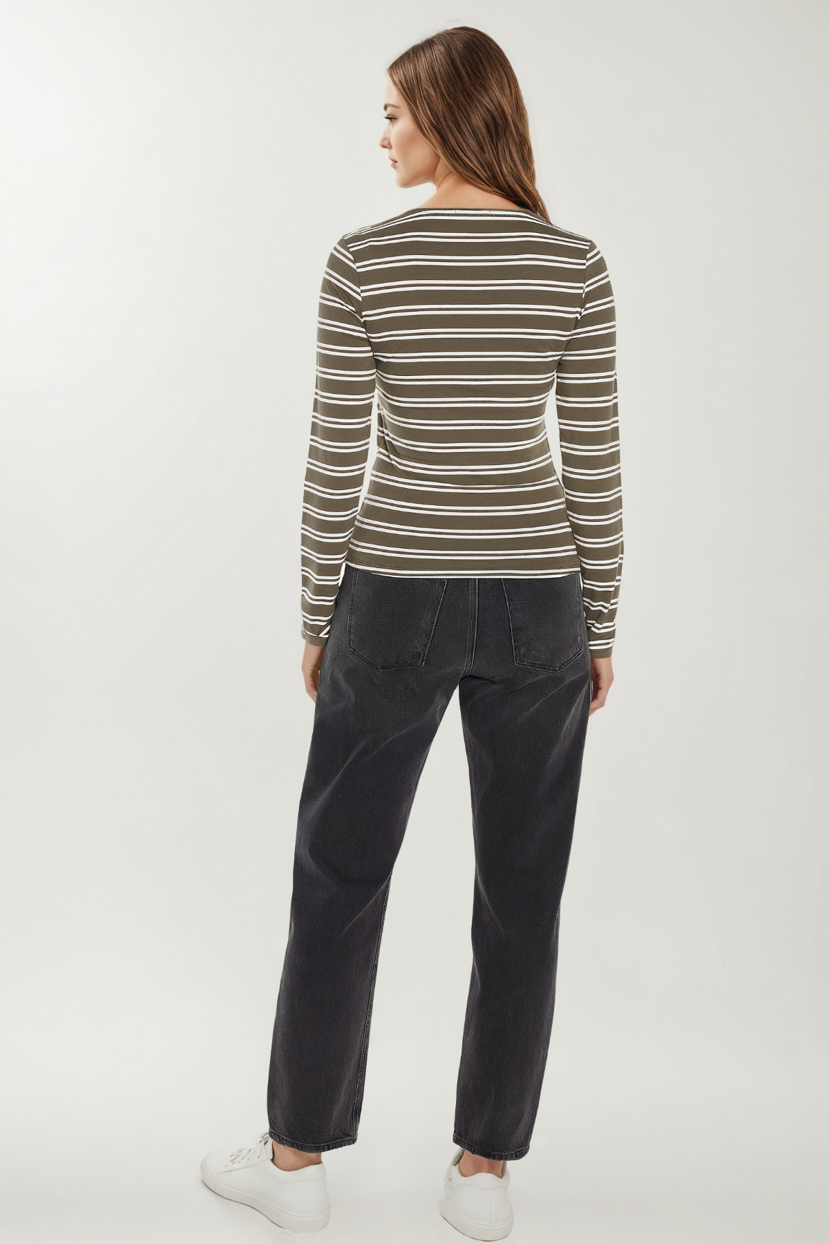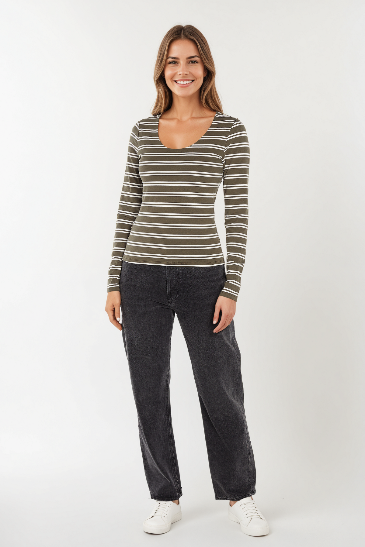 Scoop Neck Long Sleeve Tee | Olive Night Stripe