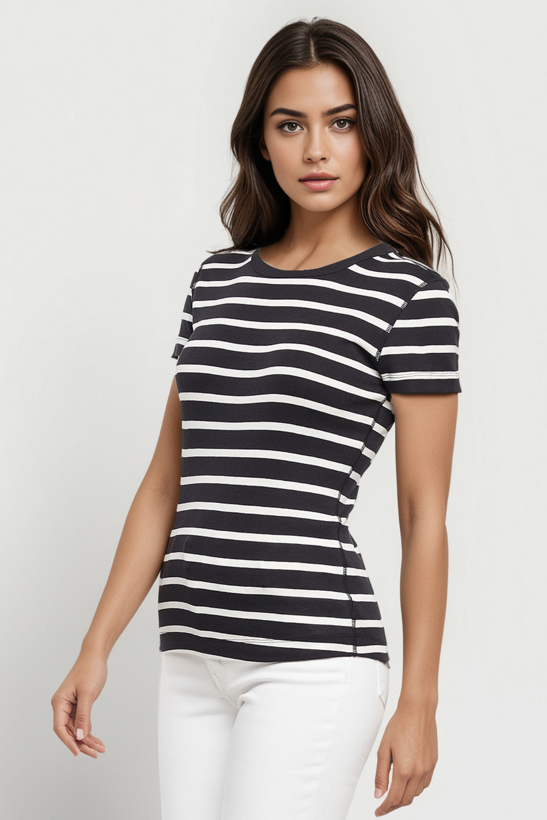 Crew-Neck Short Sleeve Tee | Black Beauty Mature Stripes