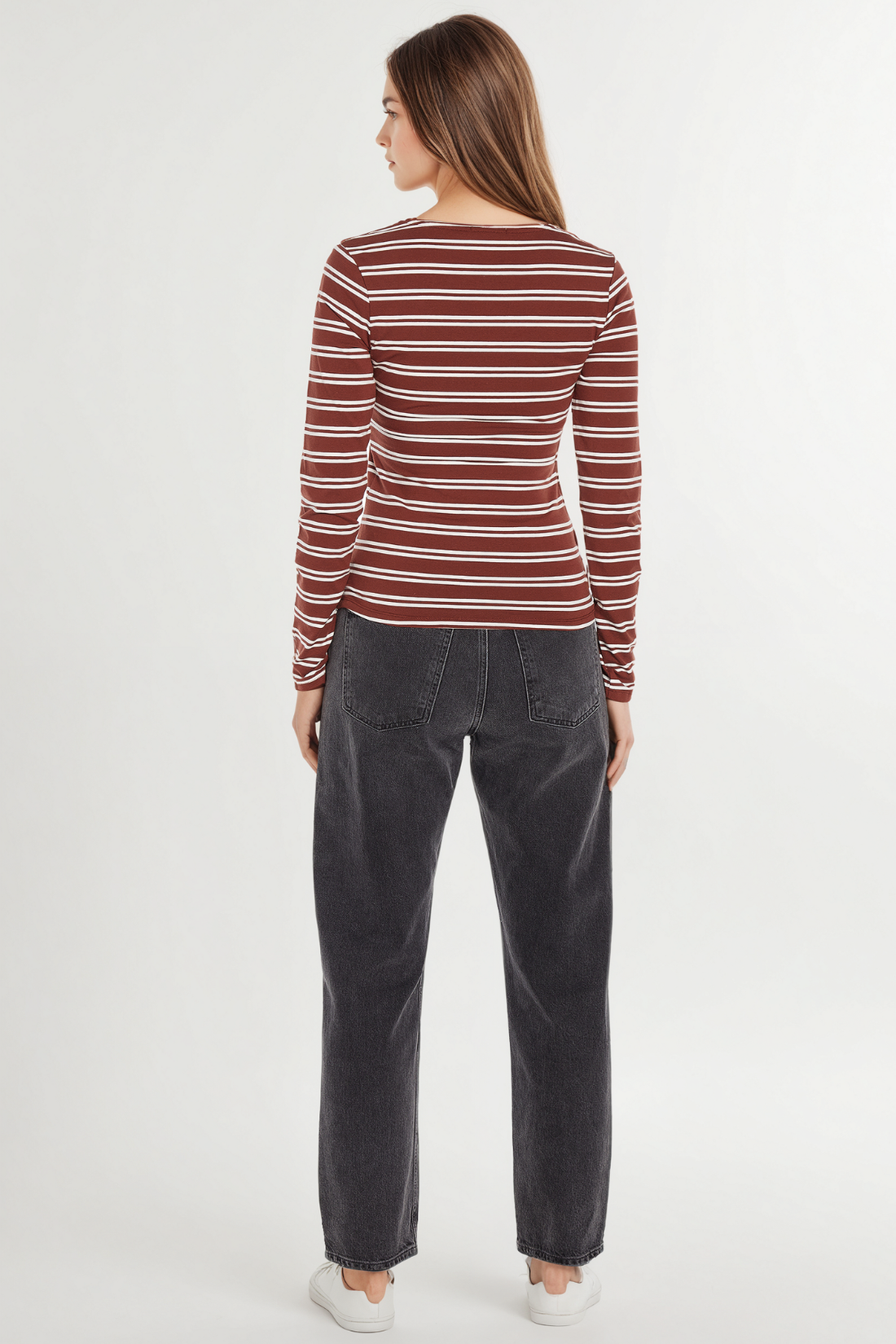 Scoop Neck Long Sleeve Tee | Cherry Mahogany Egret Stripe