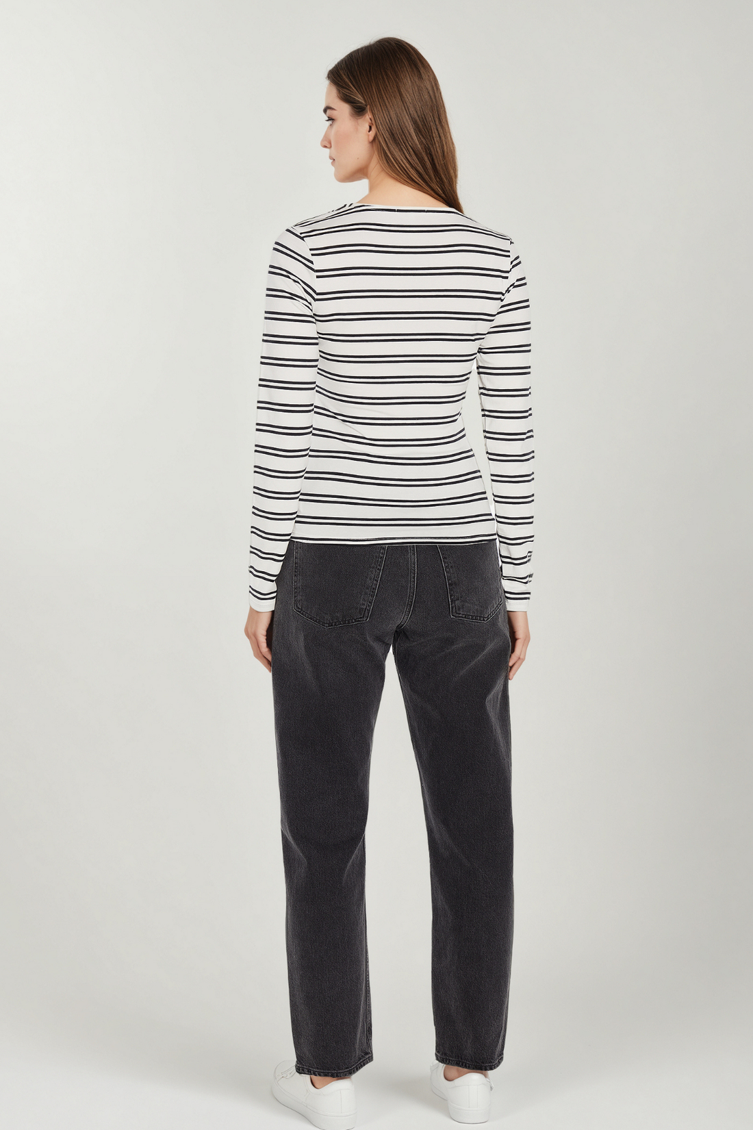 Scoop Neck Long Sleeve Tee | Egret Black Beauty Stripe- Regular price