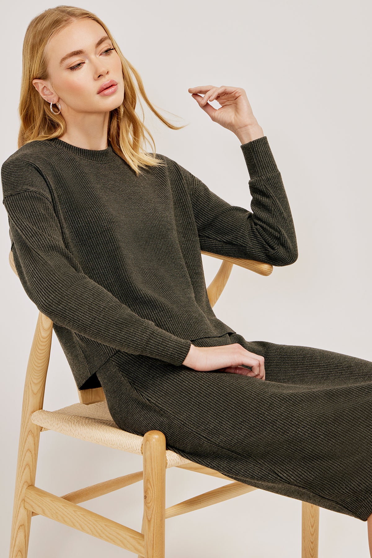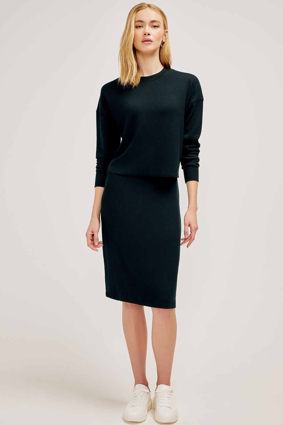 With a layered construction that makes dressing easy, this cozy two-piece set includes a rib knit, midi-length tank dress and the attached, matching top, which features dolman long sleeves and a relaxed fit.