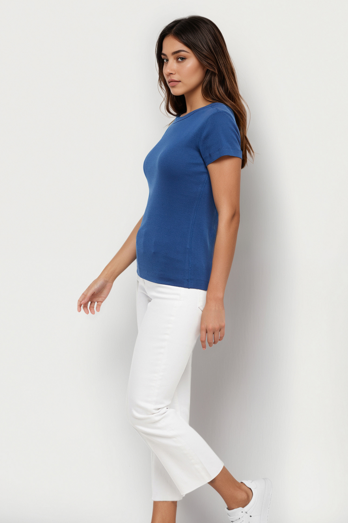 A versatile basic in soft cotton, this short-sleeved tee features a classic crew neckline and a slim-fit silhouette, perfect for tucking into your favorite bottoms.