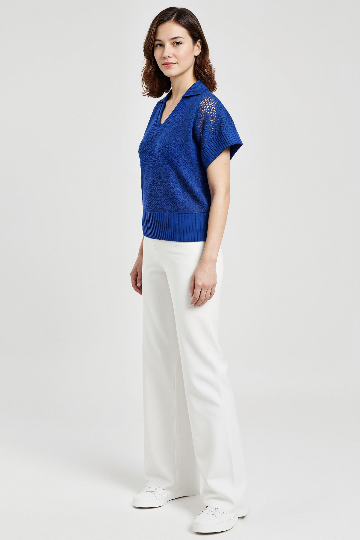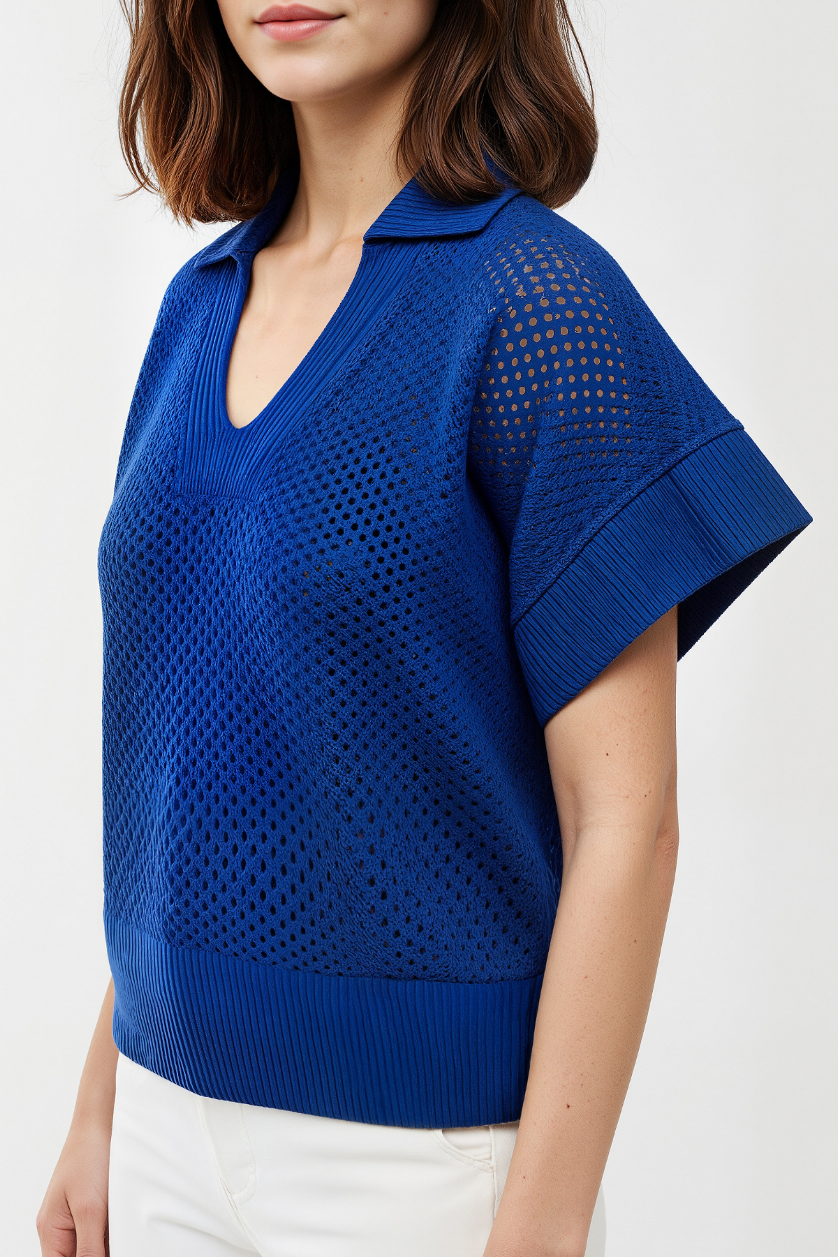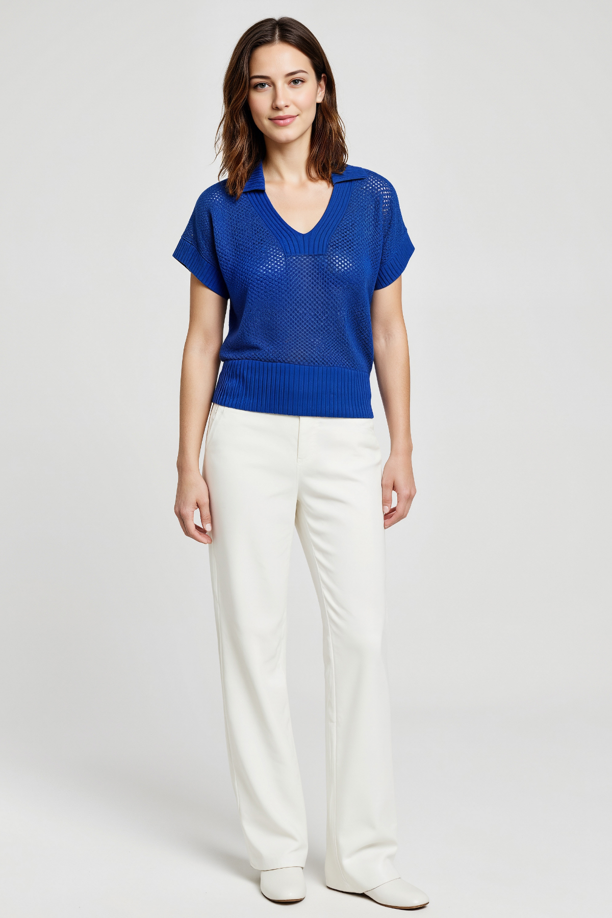 Chic and endlessly versatile. The Lili knit sweater top is a closet staple! Featuring a breezy open-knit design, a flattering V-neckline with classic collar, and dolman short sleeves. It's perfect for sunny days or layering up in style. Soft, comfy, and oh-so-polished—what’s not to love?