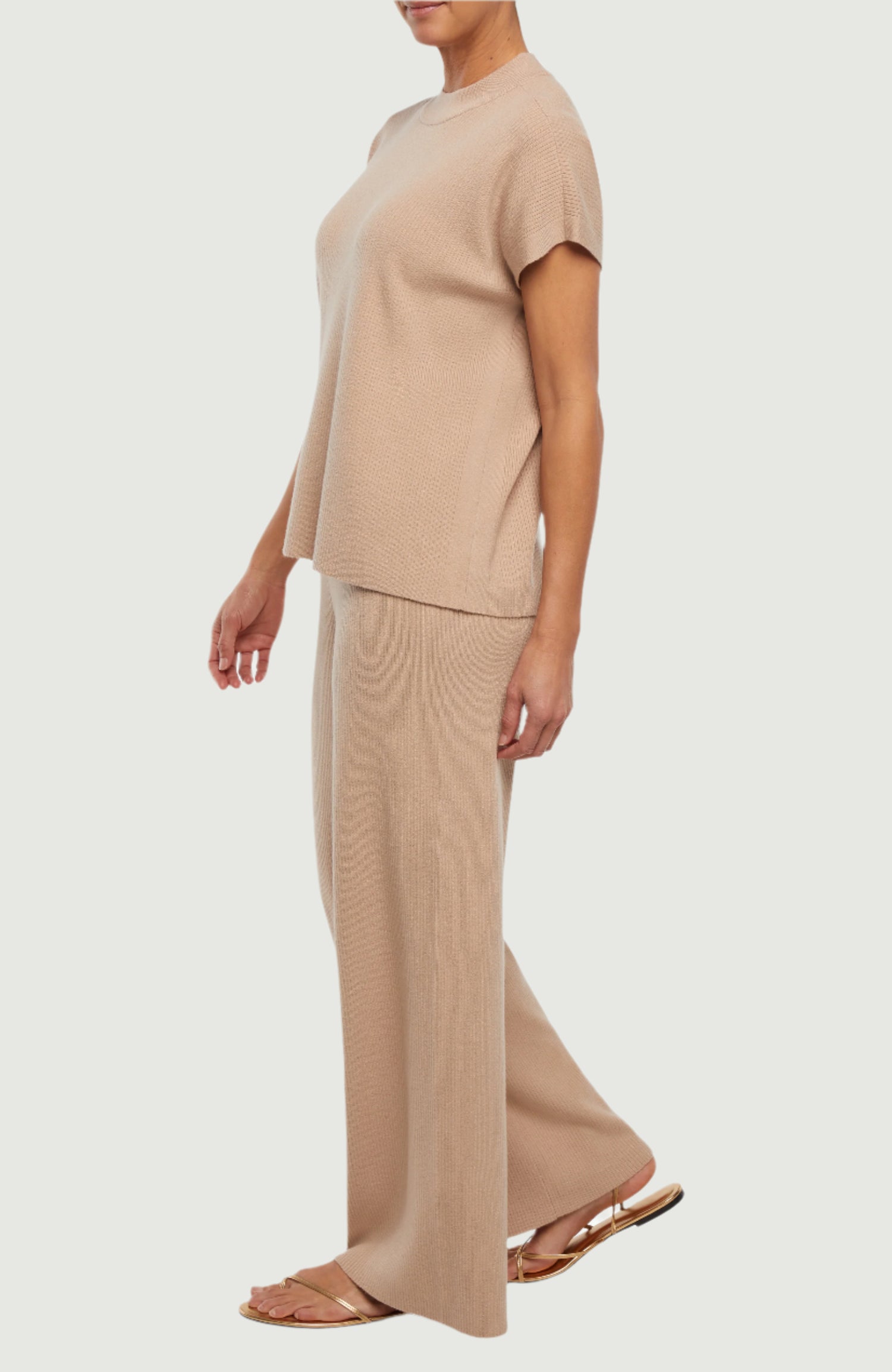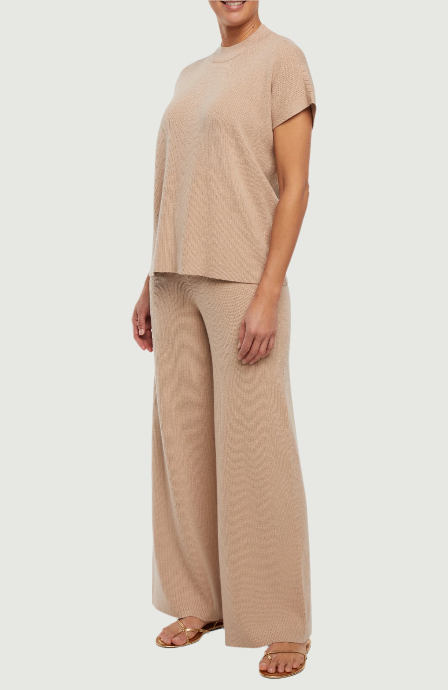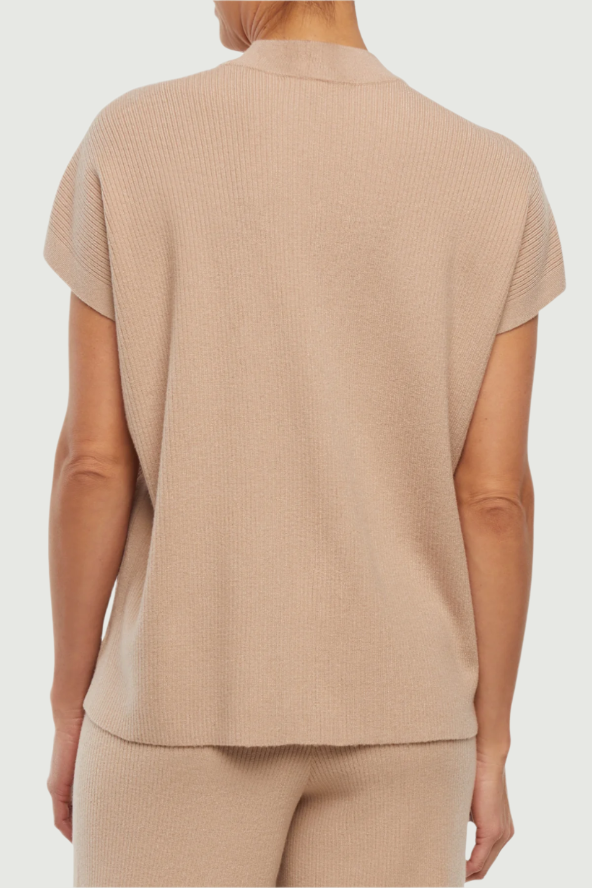 Cozy meets chic in this khaki short-sleeve knit top! With its soft ribbed texture, relaxed fit, and mock neckline, it’s perfect for lounging in style or pairing with your favorite pieces for an effortlessly polished look.