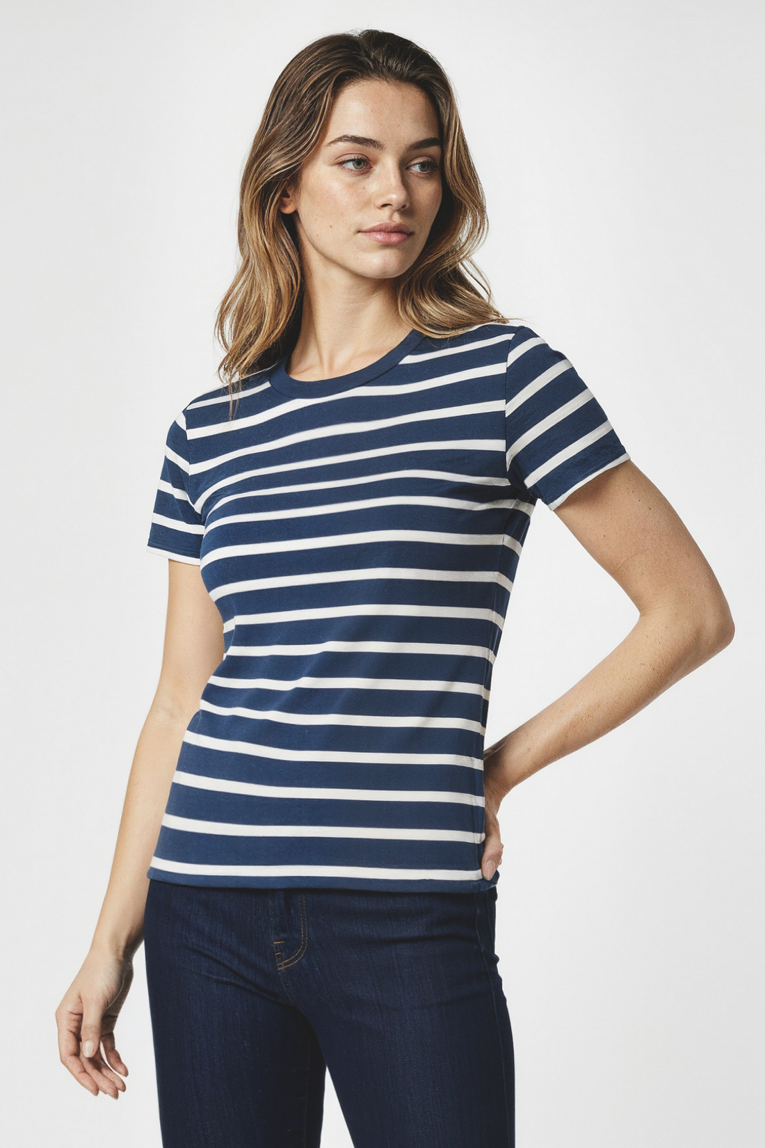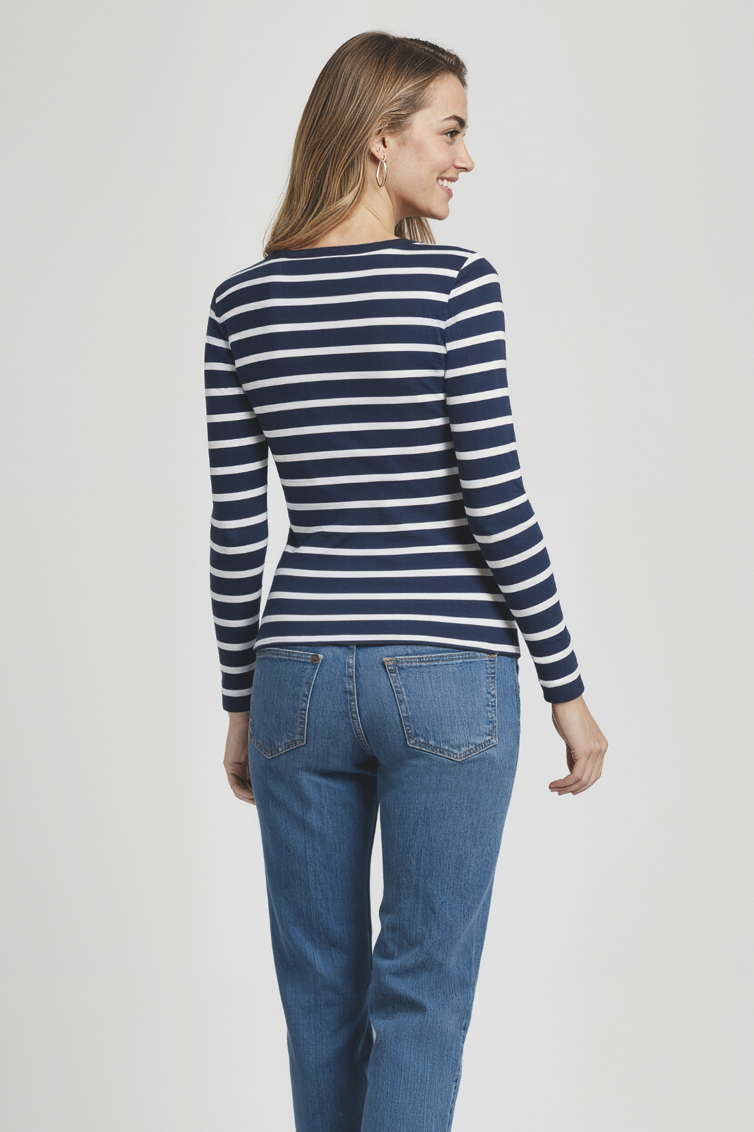 Victoria Crew-Neck Long Sleeve Rib Tee | Bright White StripeVictoria Crew-Neck Long Sleeve Rib Tee | Bright White Stripe