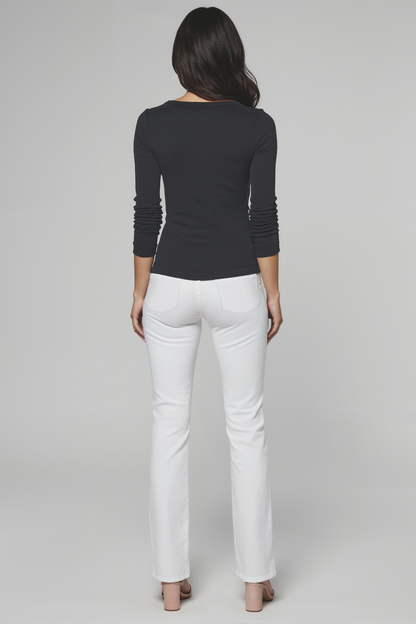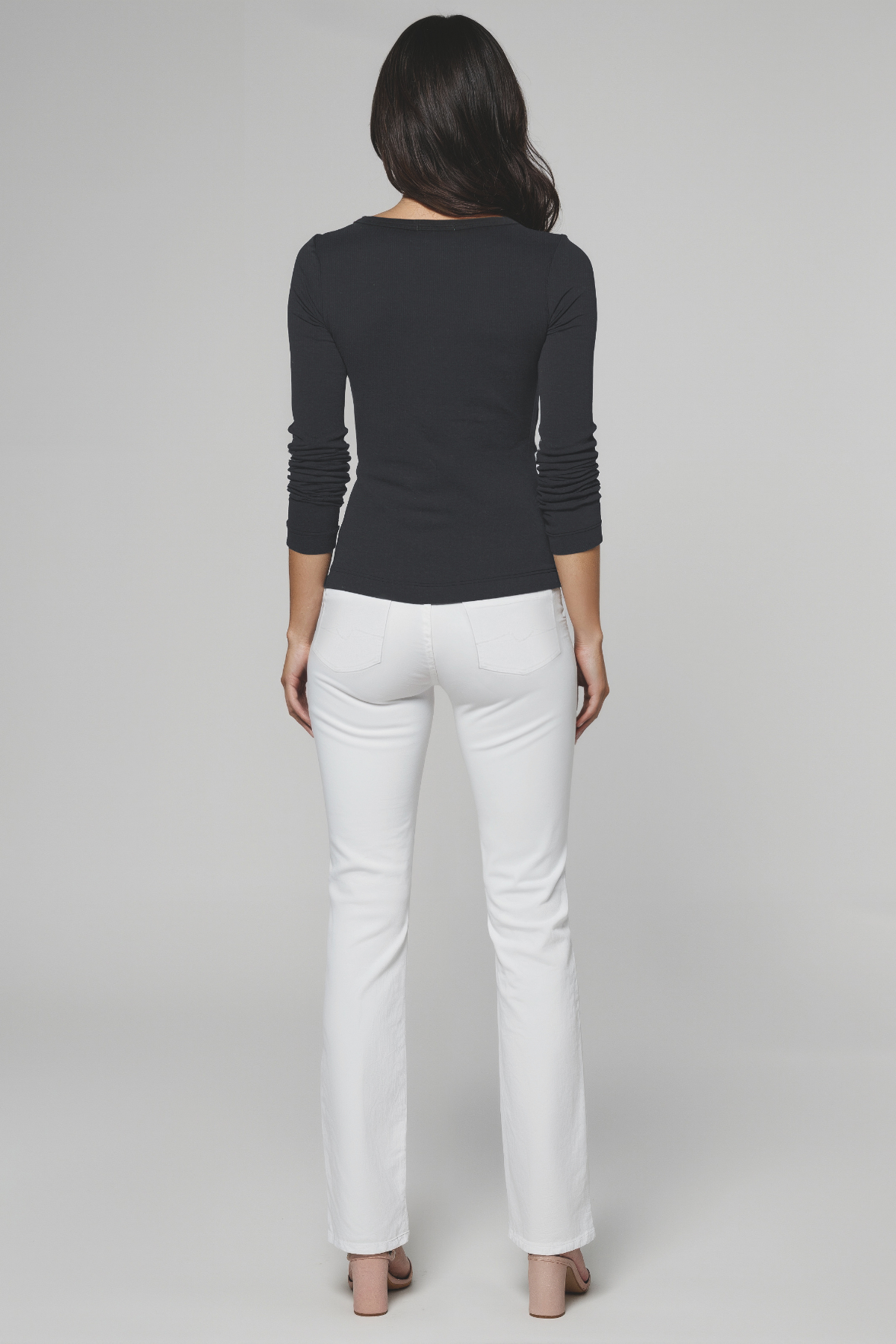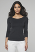 This easy cotton tee is a comfortable wardrobe staple with an elegant flair — featuring a boatneck, three-quarter sleeves, and a fitted silhouette.