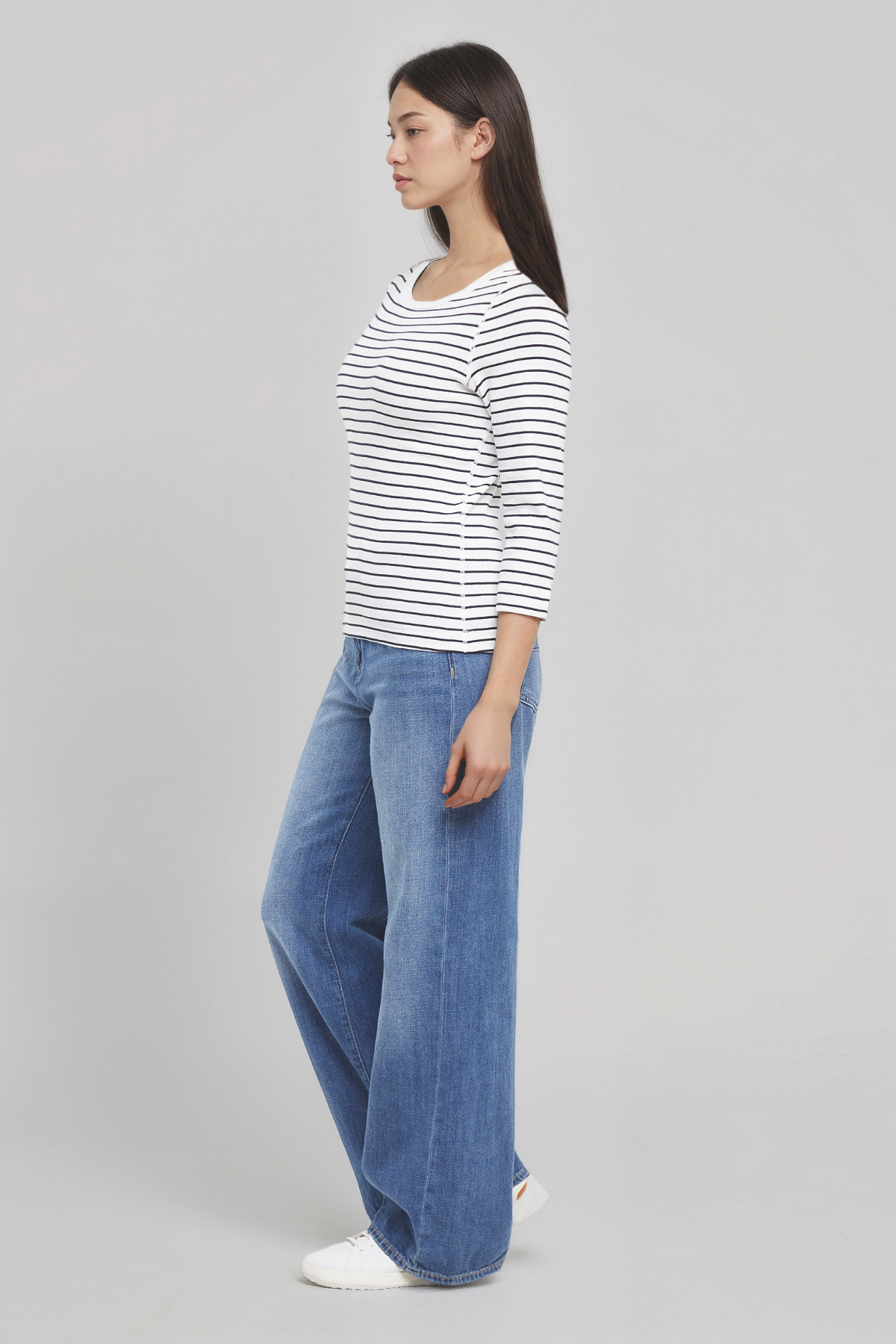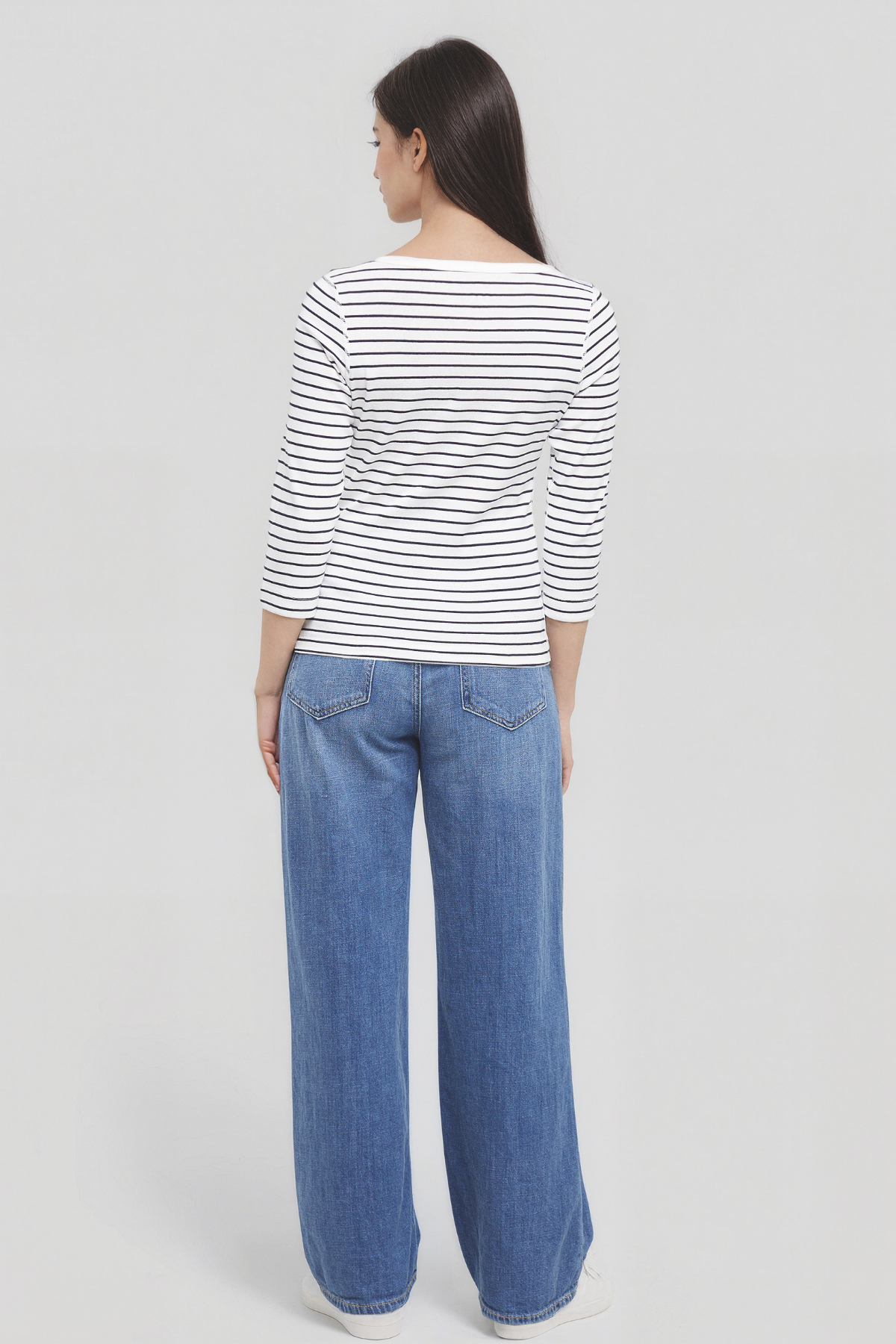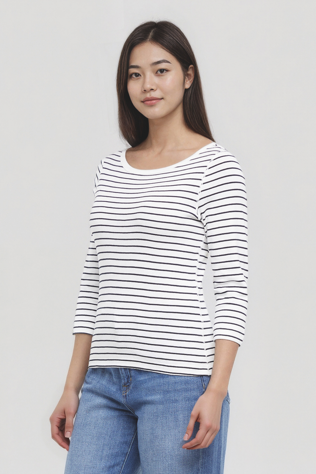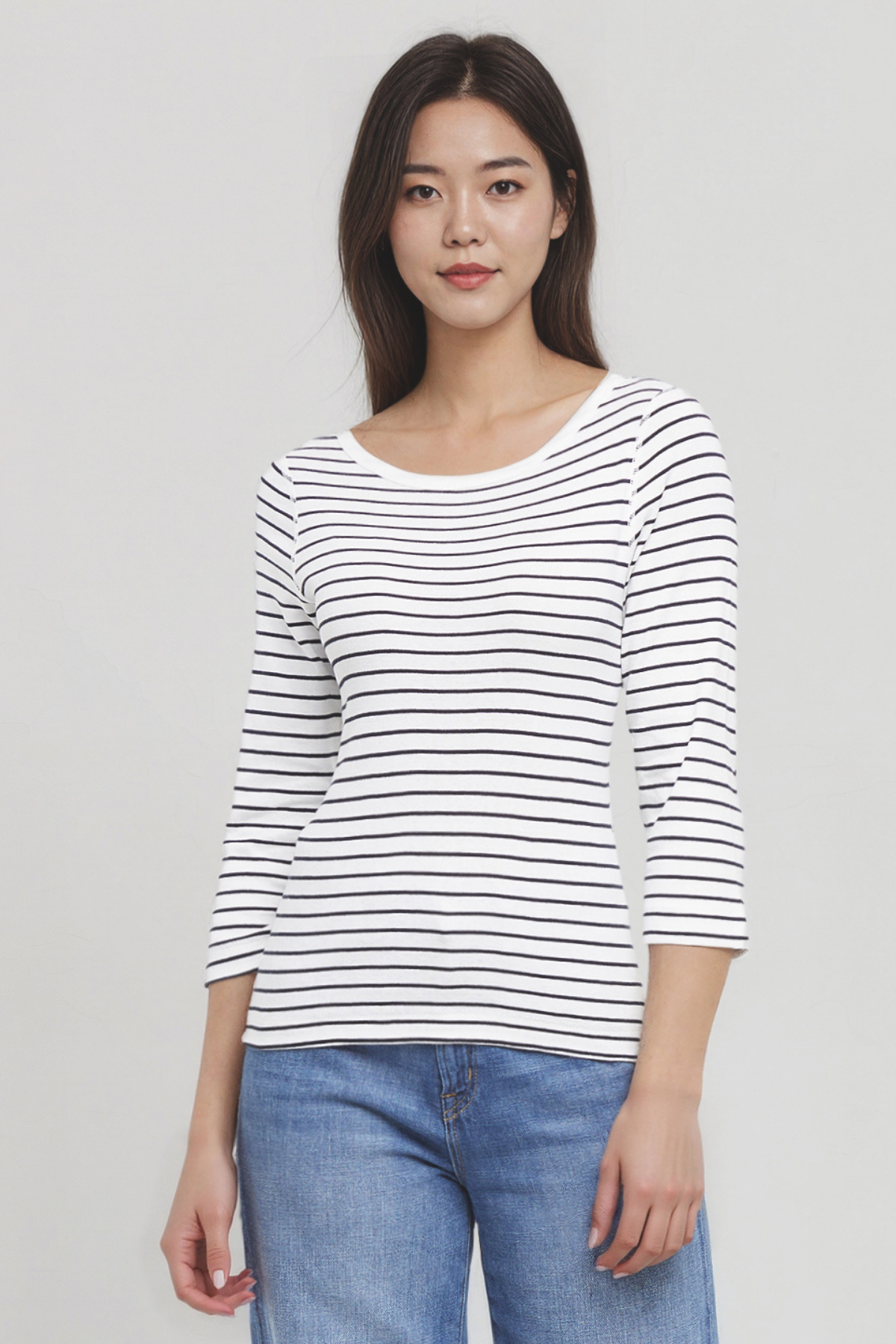Boat Neck 3/4 Sleeve Tee | Bright White Stripe