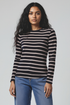 Ribbed Crew-Neck Long Sleeve Tee | Black Beauty Silver Lining Mel Stripe