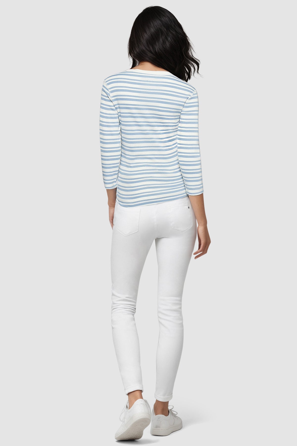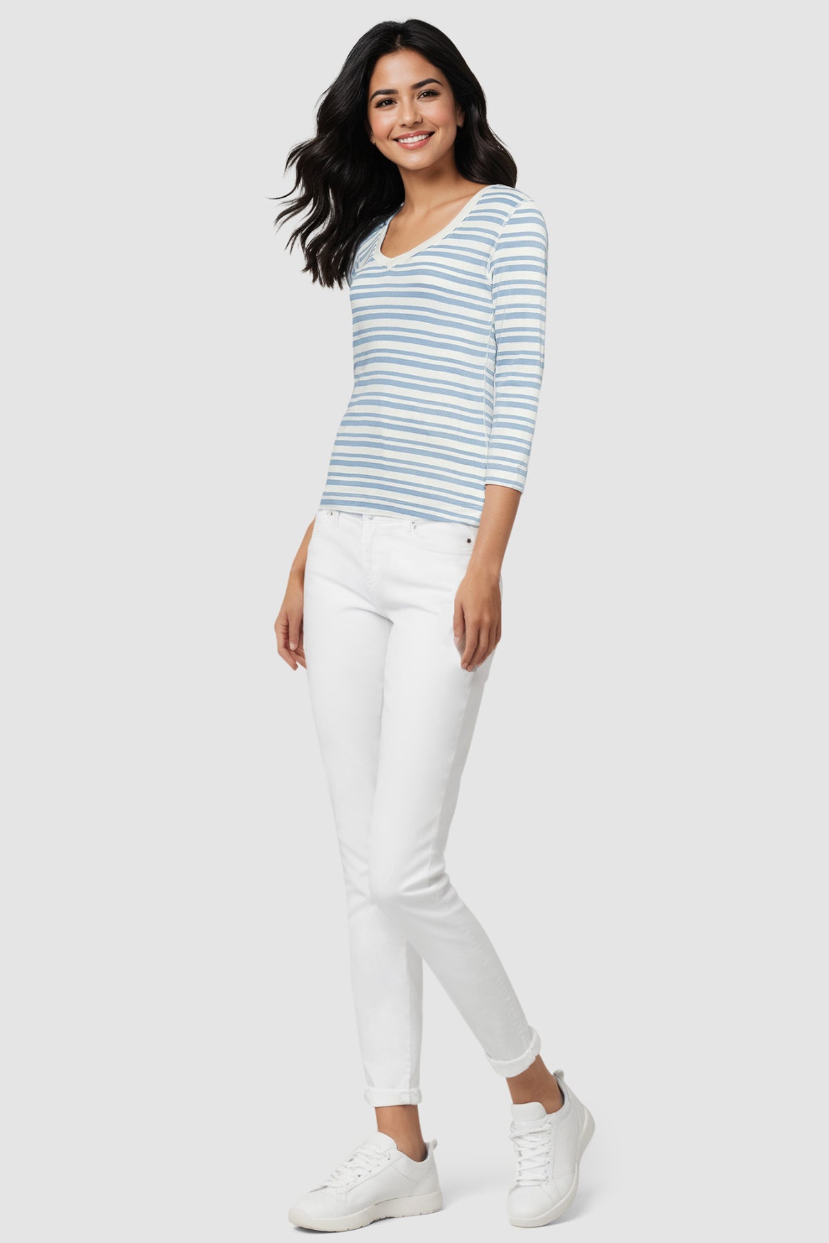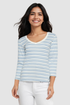 Knit 3/4 Sleeve V-Neck Tee | Faded Denim Mature Stripes