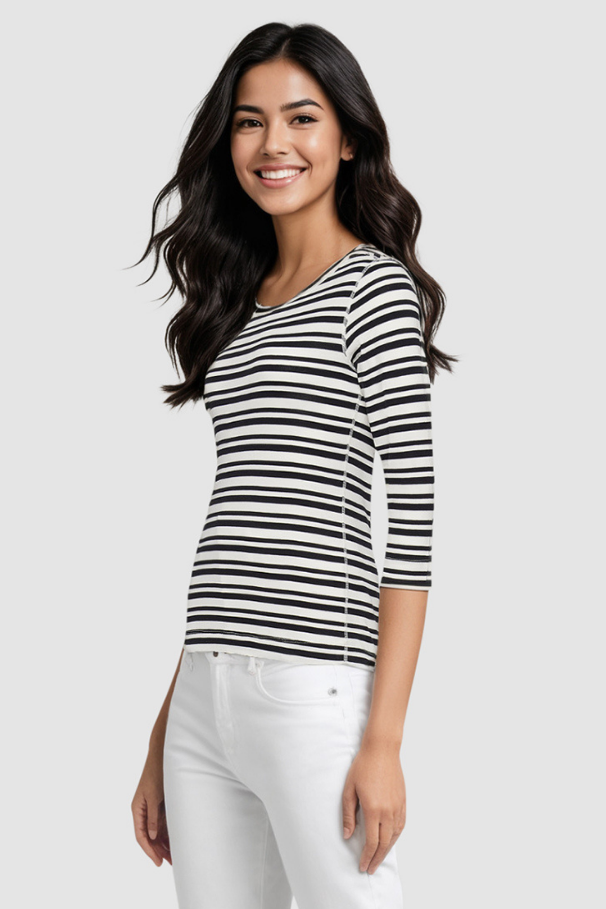 3/4 Sleeve British Tee | Black Beauty Mature Stripes