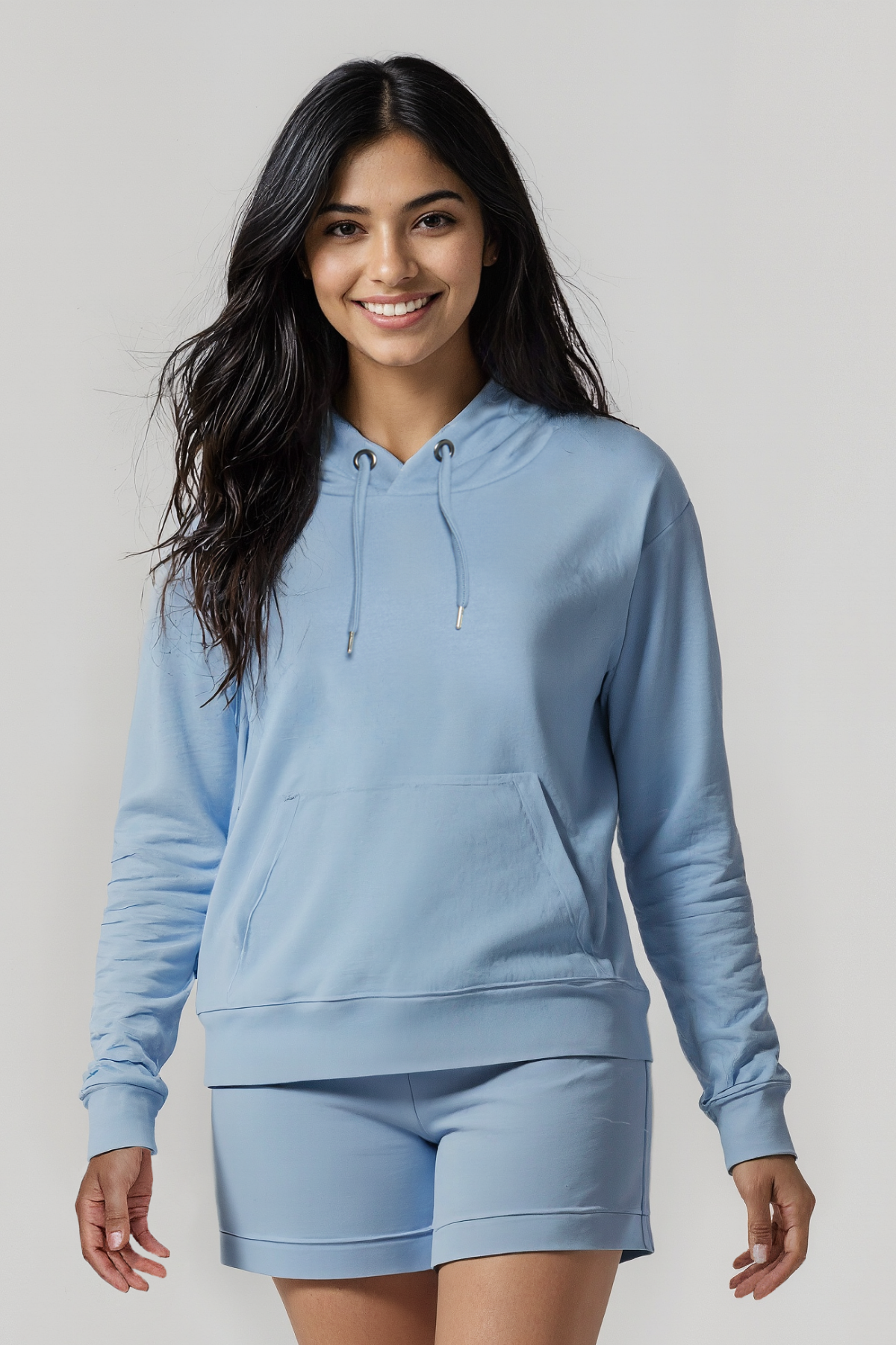 A relaxed fit cut from French terry, this soft, comfortable pullover features a drawcord hood, long sleeves with dropped shoulders, a handy kangaroo pocket, and a banded high-low hem.