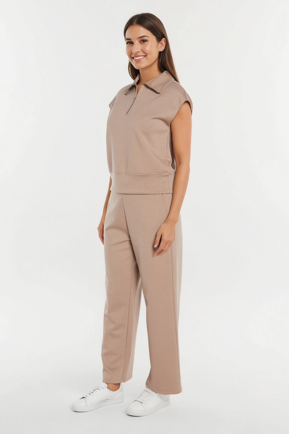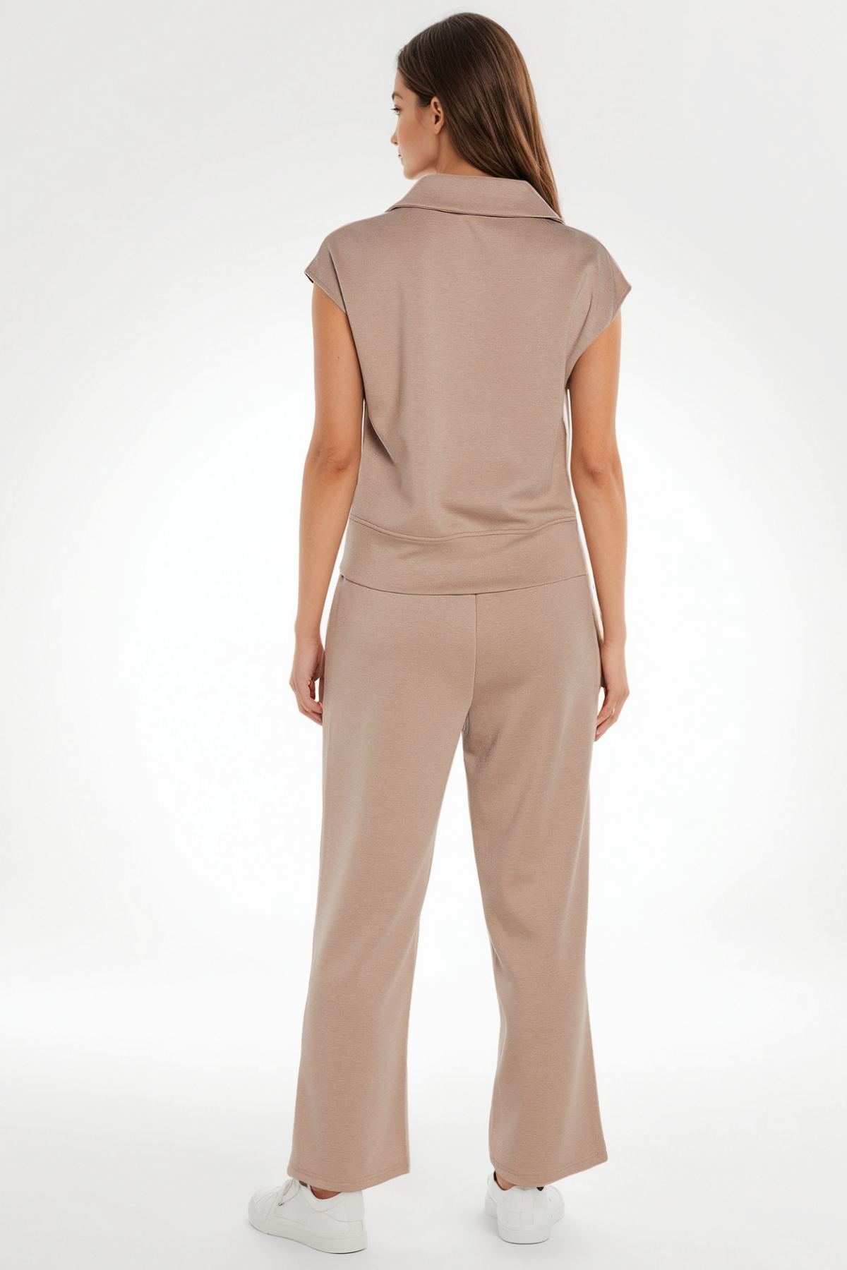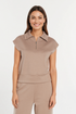 Crafted in soft and smooth scuba fabric, this relaxed-fit top features short cap sleeves and a high mockneck with a front zipper, which can transform it into a foldover collar.