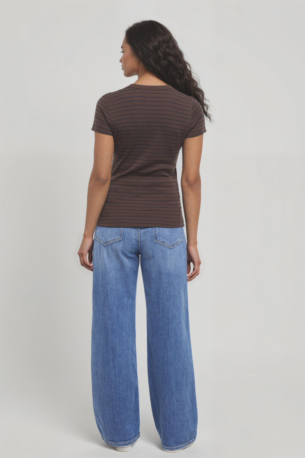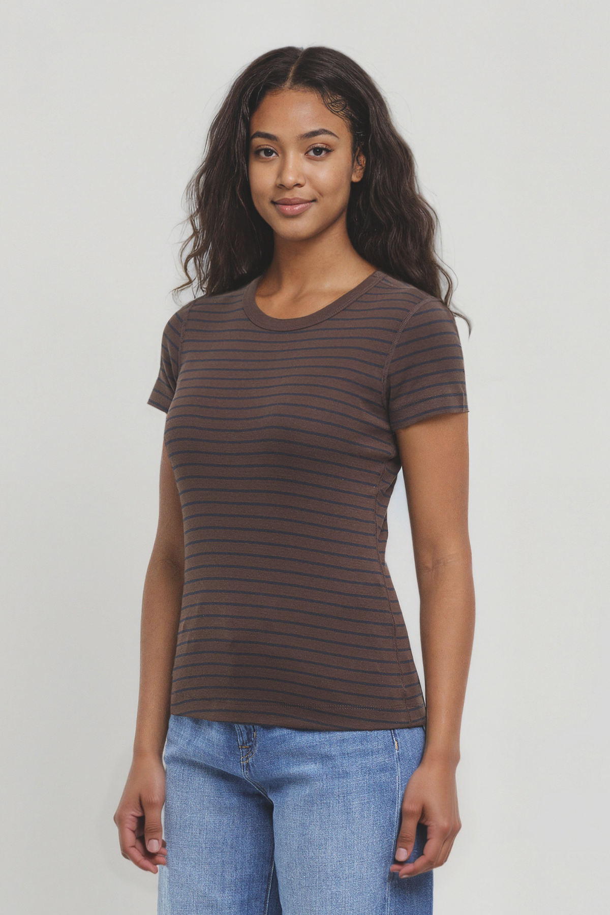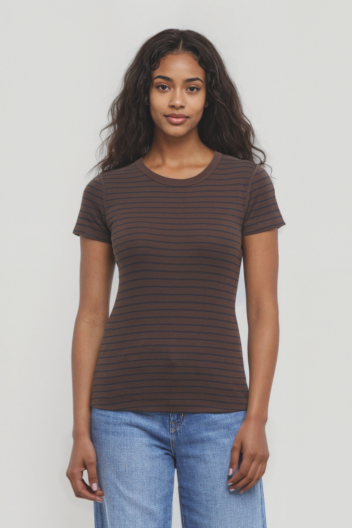 Crew-Neck Short Sleeve Rib Tee | Black Coffee Stripe