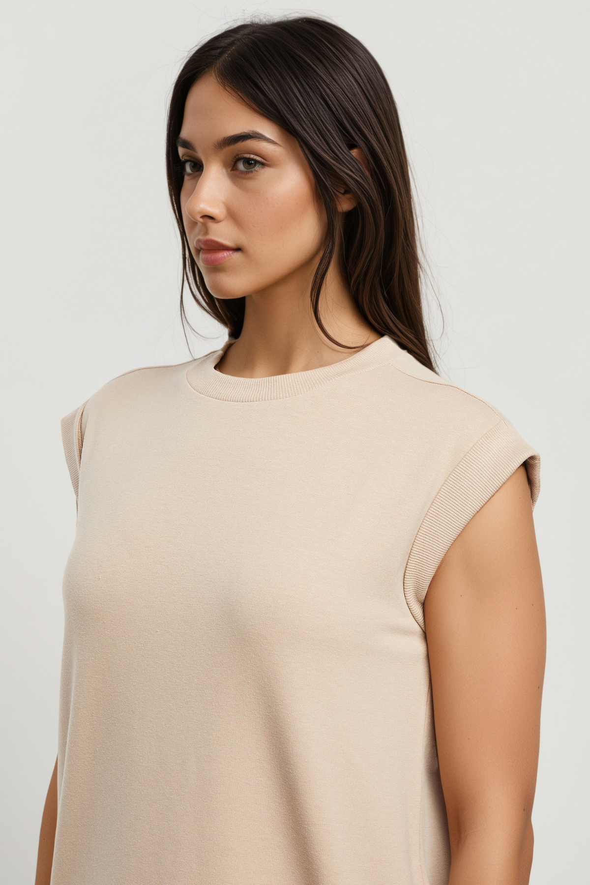 Easy like a Sunday afternoon, this shift minidress in soft French terry features a loose-fit silhouette, dolman cap sleeves, and on-seam side pockets to keep your weekend hands-free.