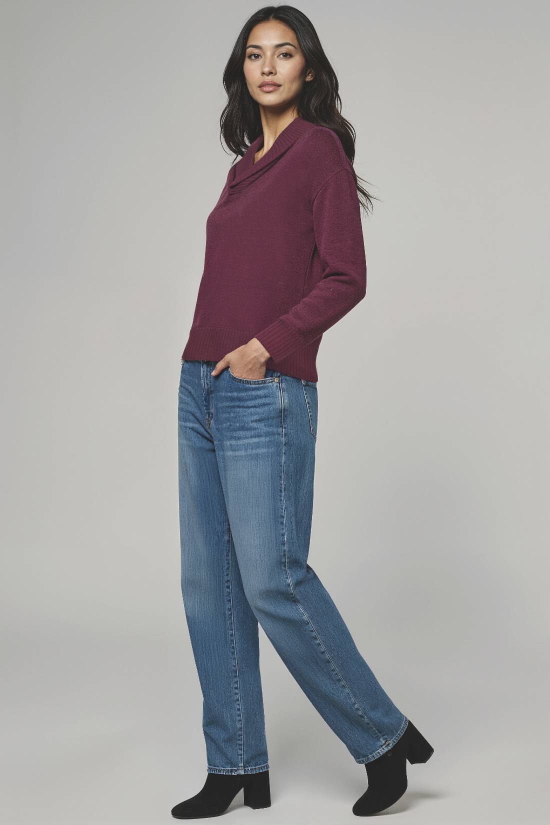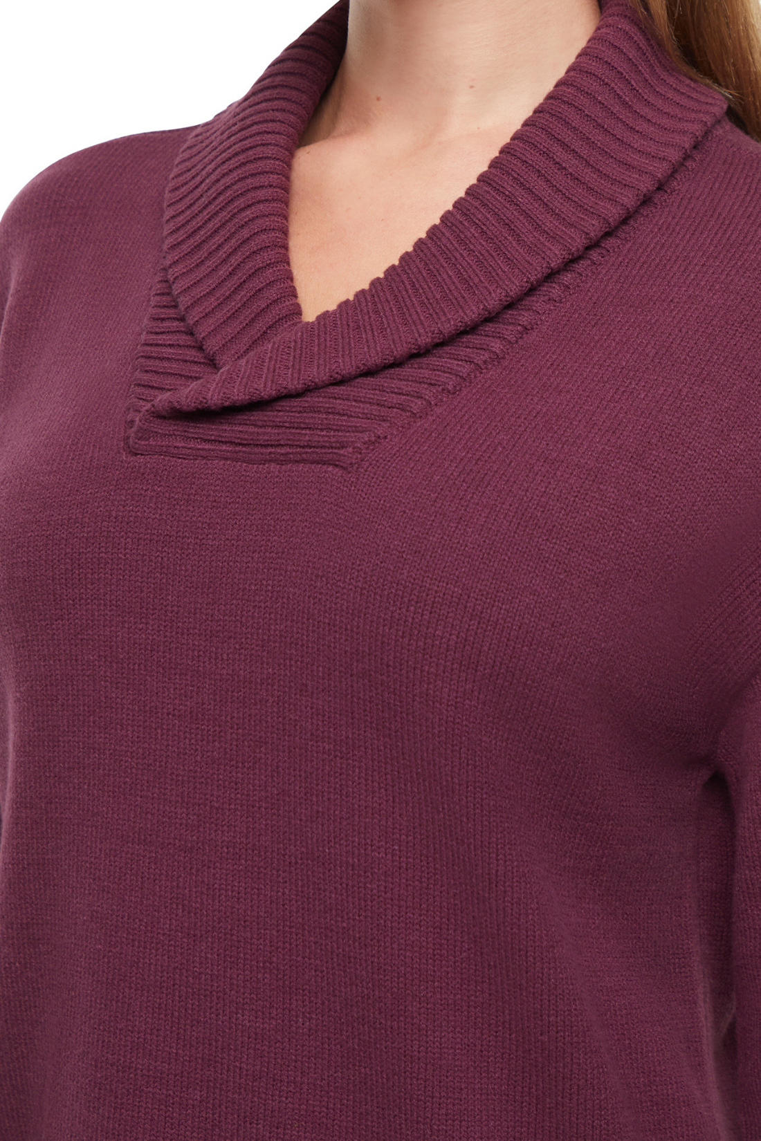 Soft and cozy, this timeless sweater features a deep shawl v-neckline and ribbed hems. Pair this chic style with your favorite denim for casual wear.